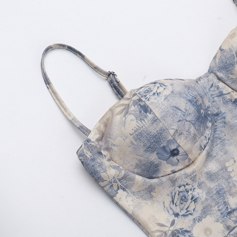 Chest Showing Printing Slip Dress Women Spring Elegant Vacation Dress