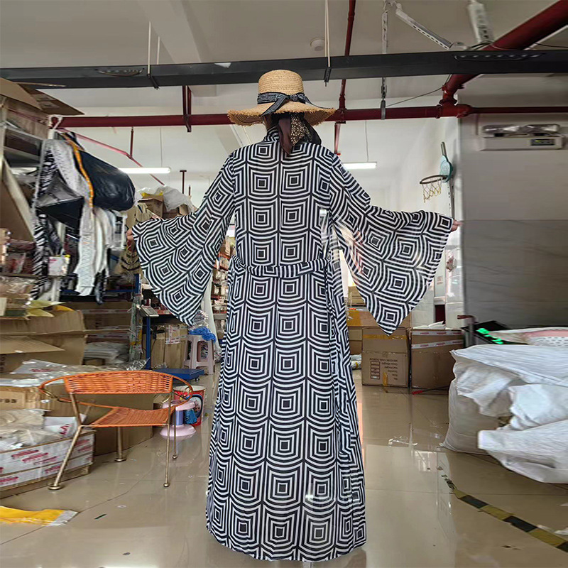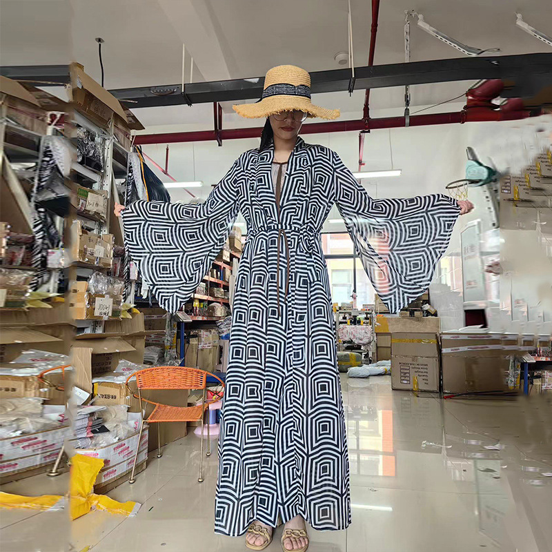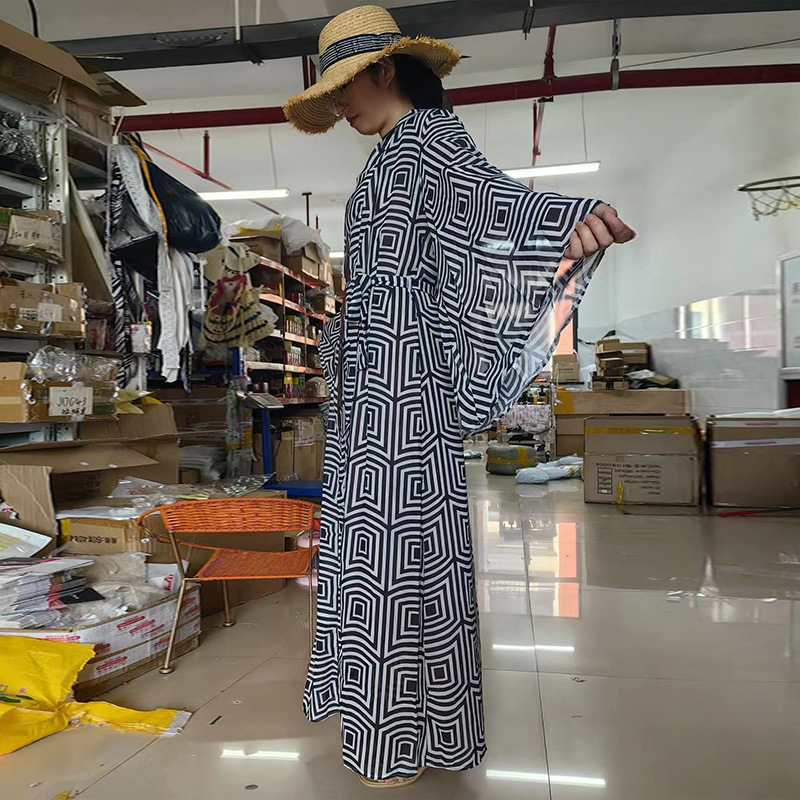 Chiffon Positioning Printing Vacation Loose Long Sleeved Beach Coat Long Cardigan Bikini Outer Blouse