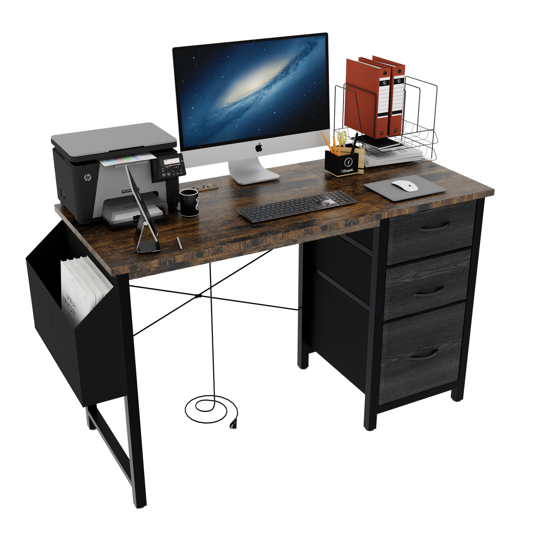 47.3'office desk with power outlet,3drawers and Side Pocket, Easy to Assemble,Frame stability Reversible for Home Office Study,Rustic Brown
