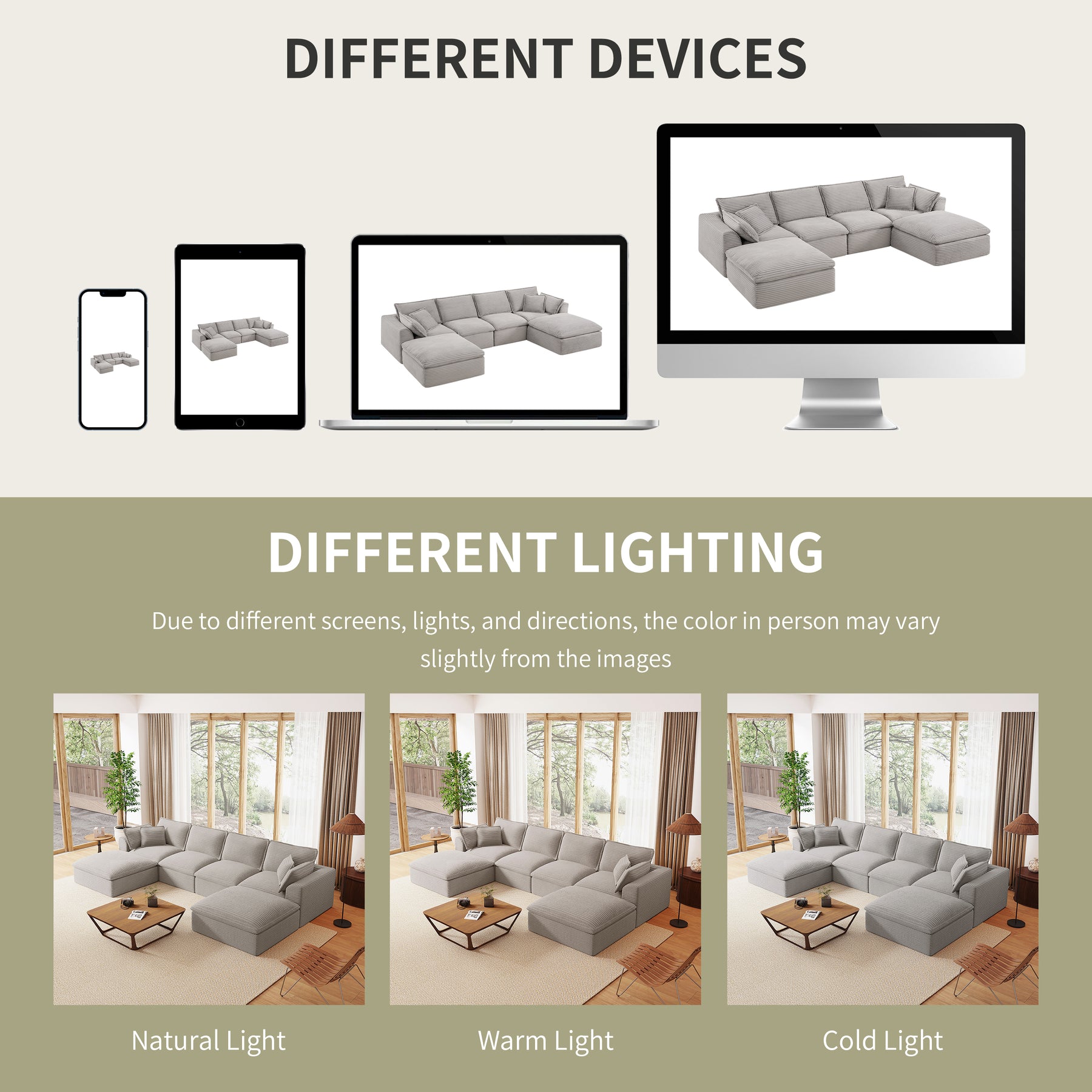 The packaging of the product package may be updated at any time, please refer to the actual product received. All colors on our website are for reference only, actual product colors may vary a little bit, due to different colour settings of every screen device. Please note: most of our sofas are hand-measured, therefore the dimensions are for reference only, and may marginally deviate.