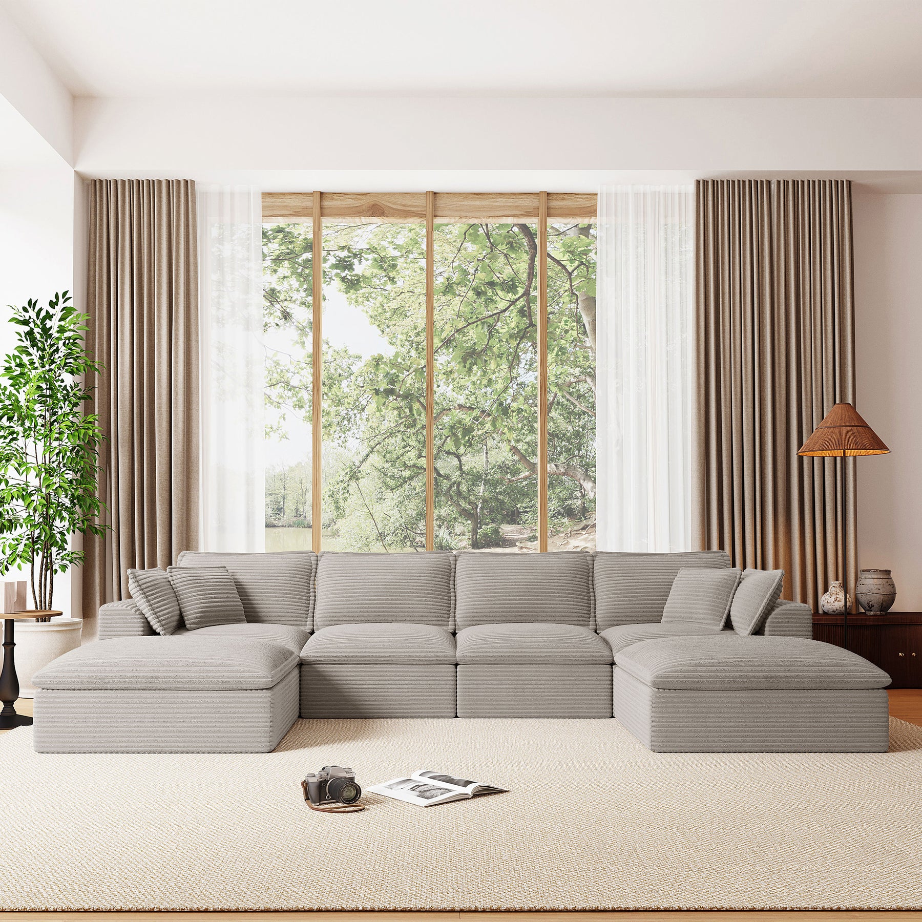 142*82' Fully Compressed Modular Sectional Sofa, U Shape with Ottomans, Luxury Corduroy with Extra Width&Depth Cloud Like Soft Cushion, No Assembly Required, for Living Room&Apartment,2 Colors