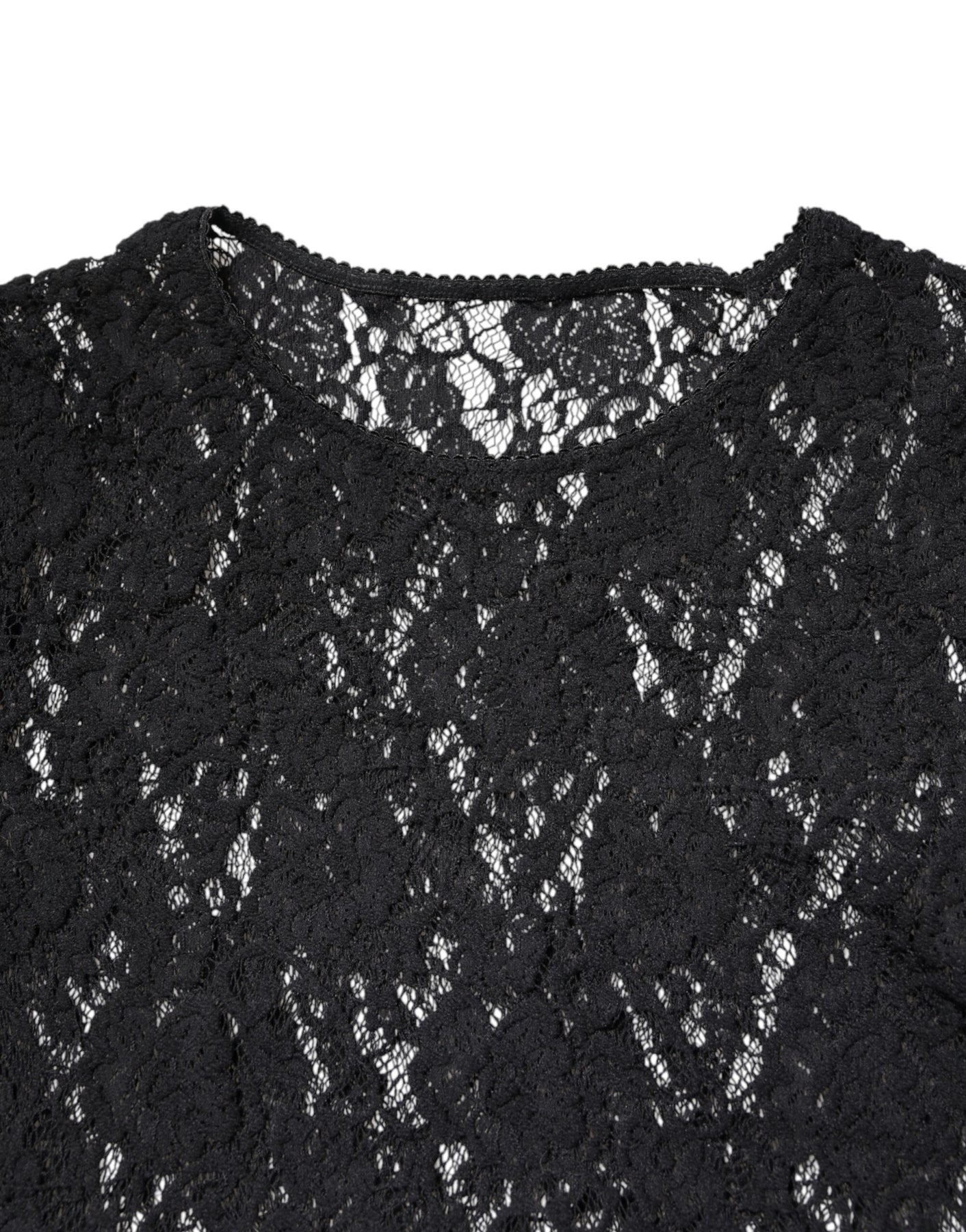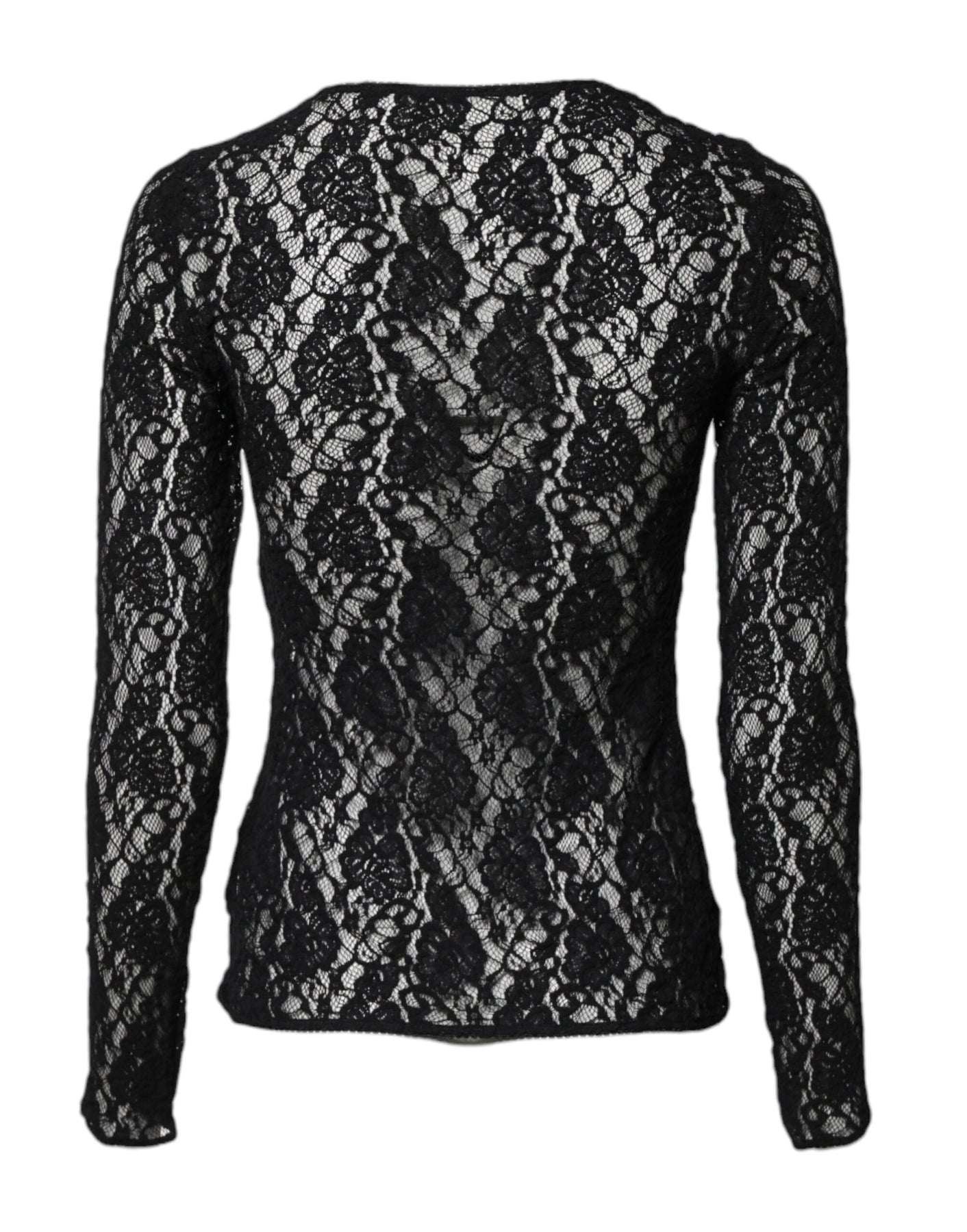 Dolce & Gabbana Black Floral Lace Long Sleeves Pullover Top