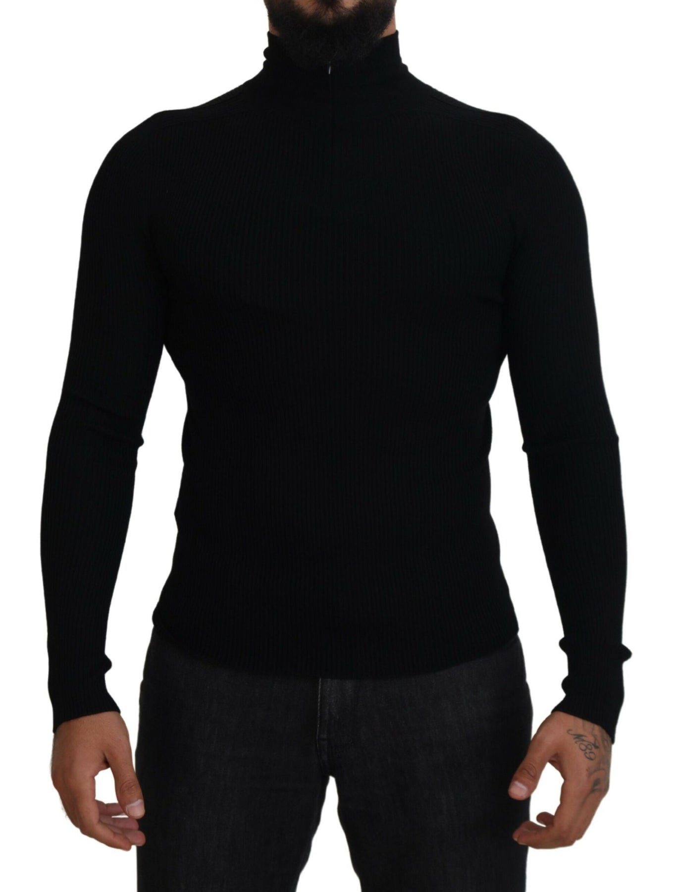 Dolce & Gabbana Black Half Zip Turtleneck Pullover Sweater