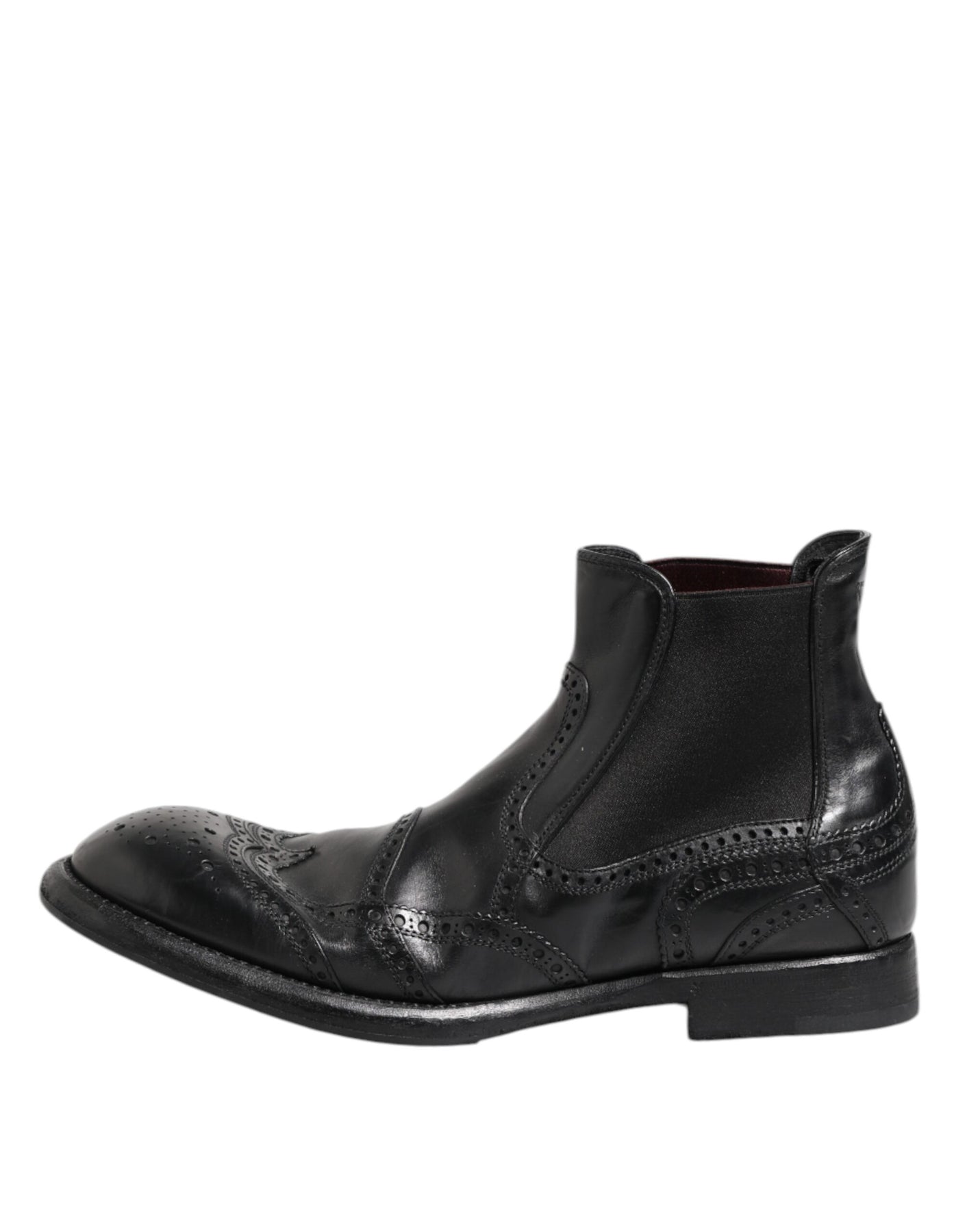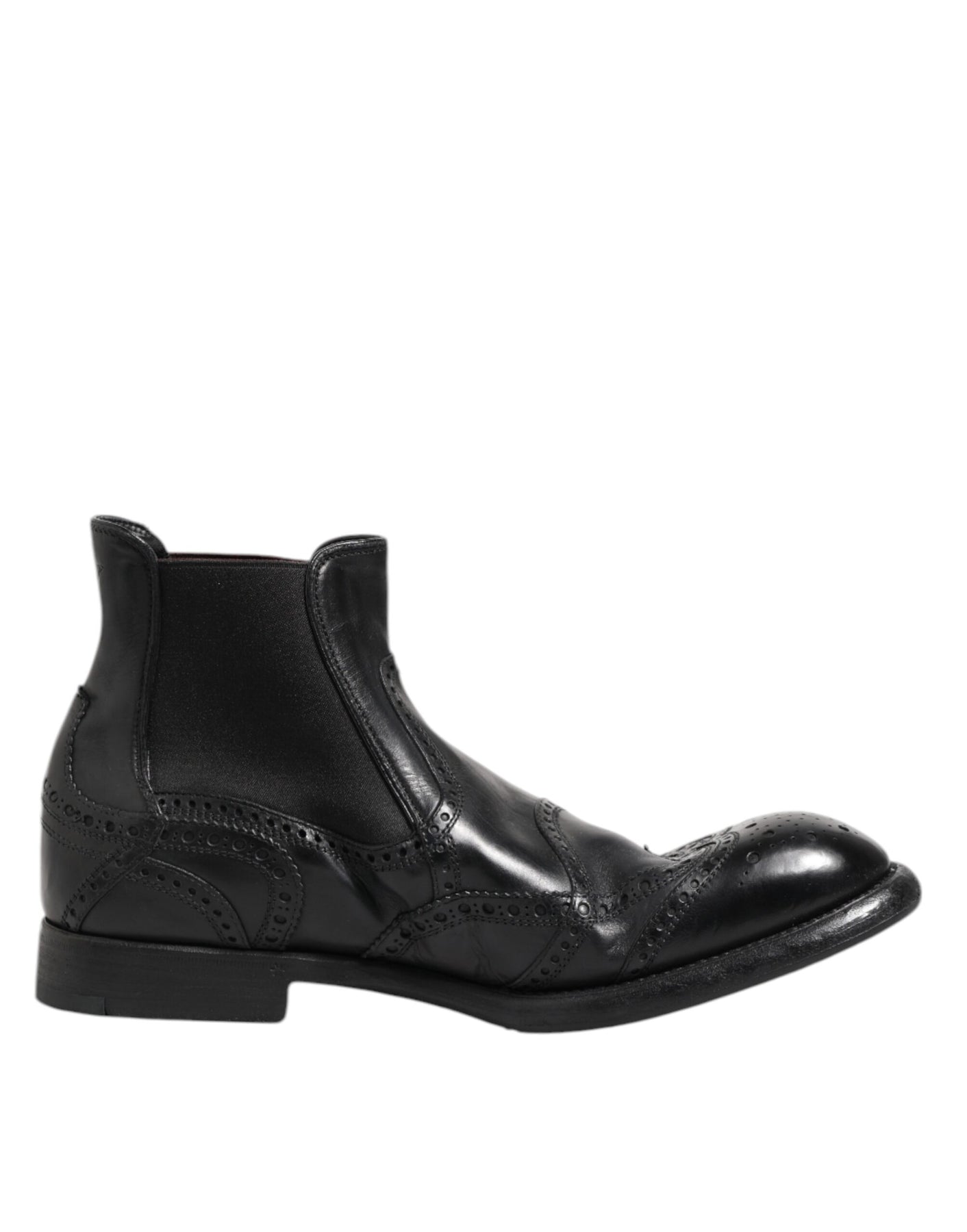 Dolce & Gabbana Black Leather Ankle Boots Slip On Shoes
