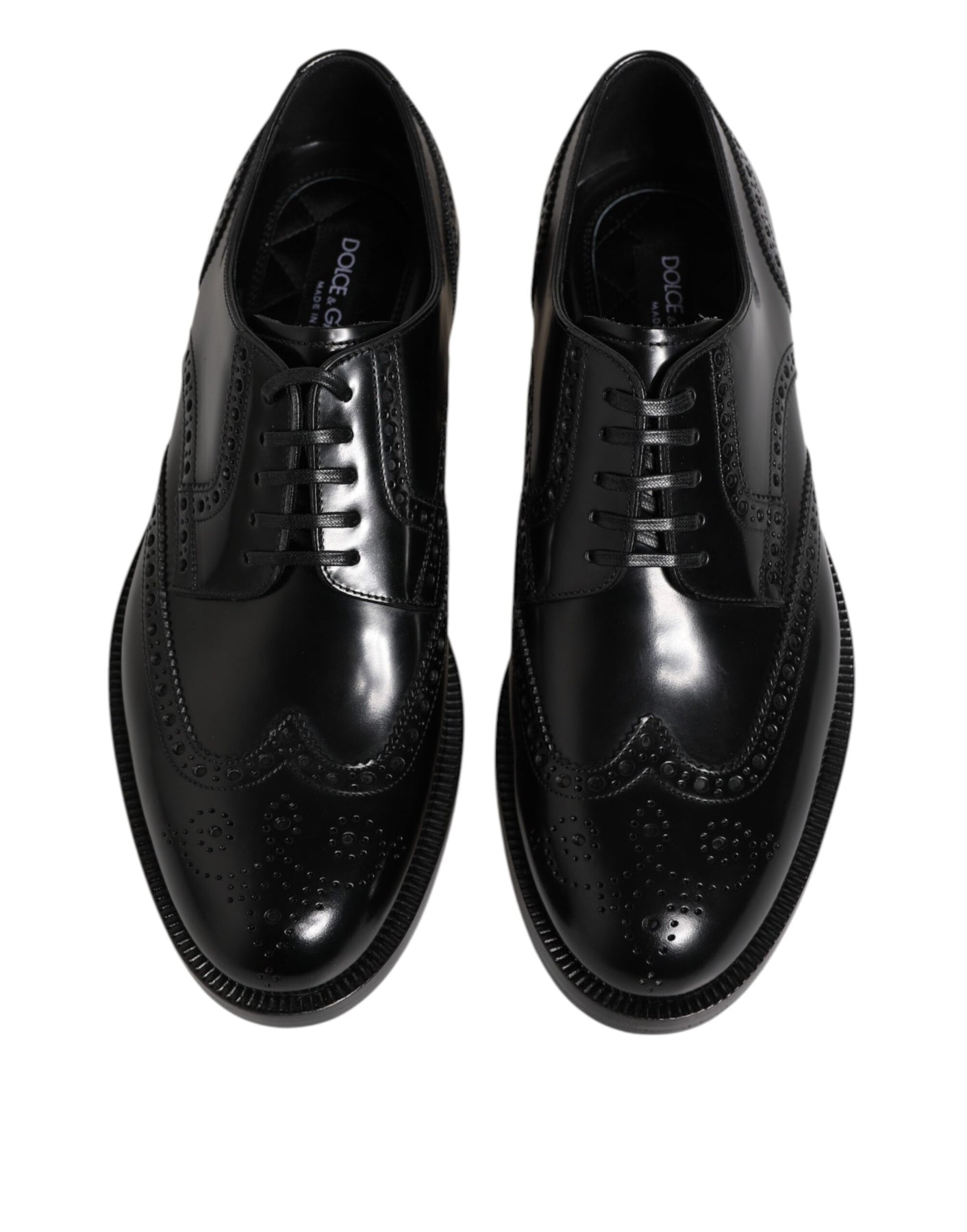 Dolce & Gabbana Black Leather Derby Wingtip Formal Shoes