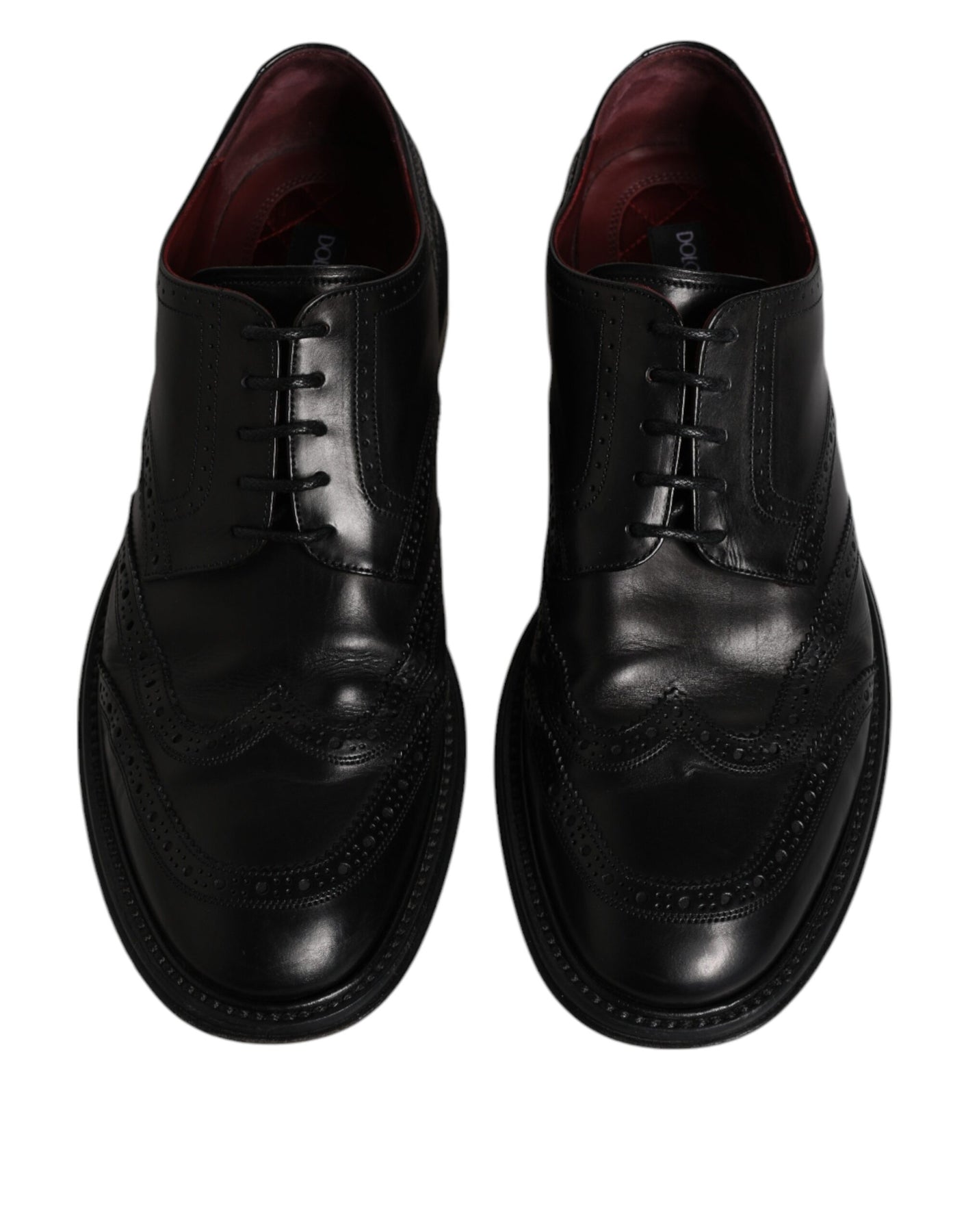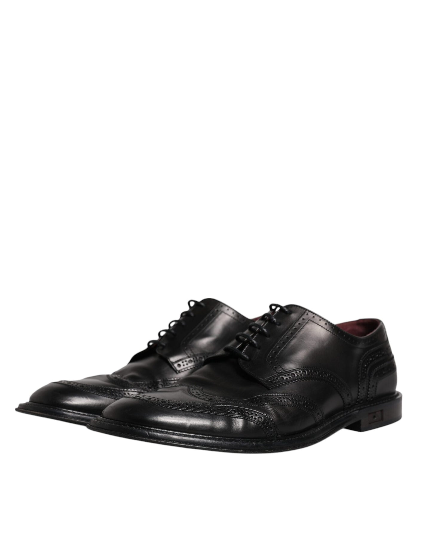 Dolce & Gabbana Black Leather Derby Wingtip Formal Shoes