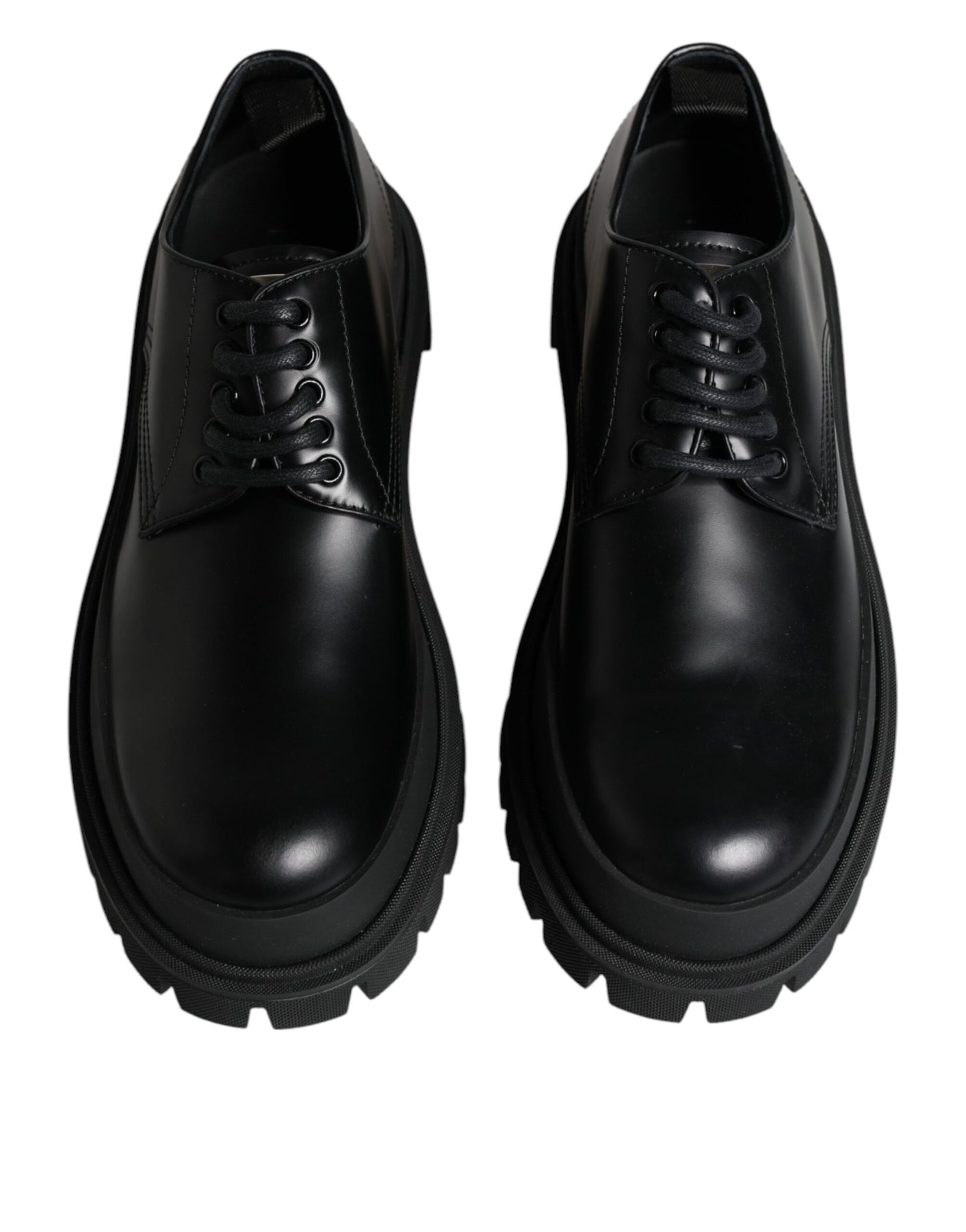 Dolce & Gabbana Black Leather Lace Up Trekking Dress Shoes
