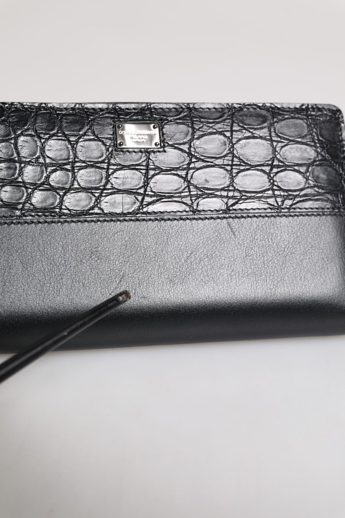 Dolce & Gabbana Black Leather Logo Plaque Zip Around Continental Wallet