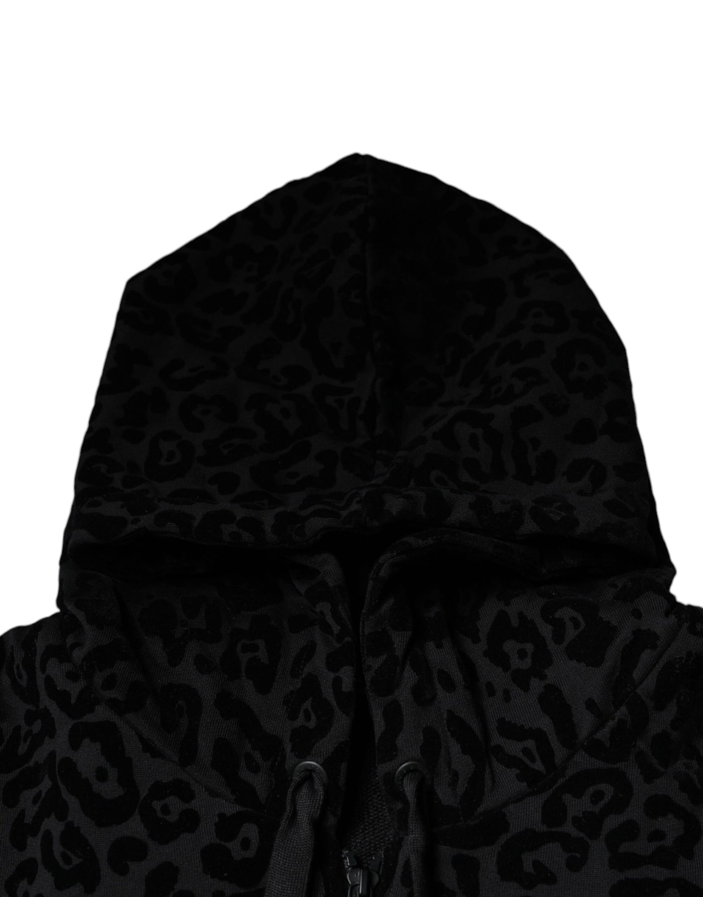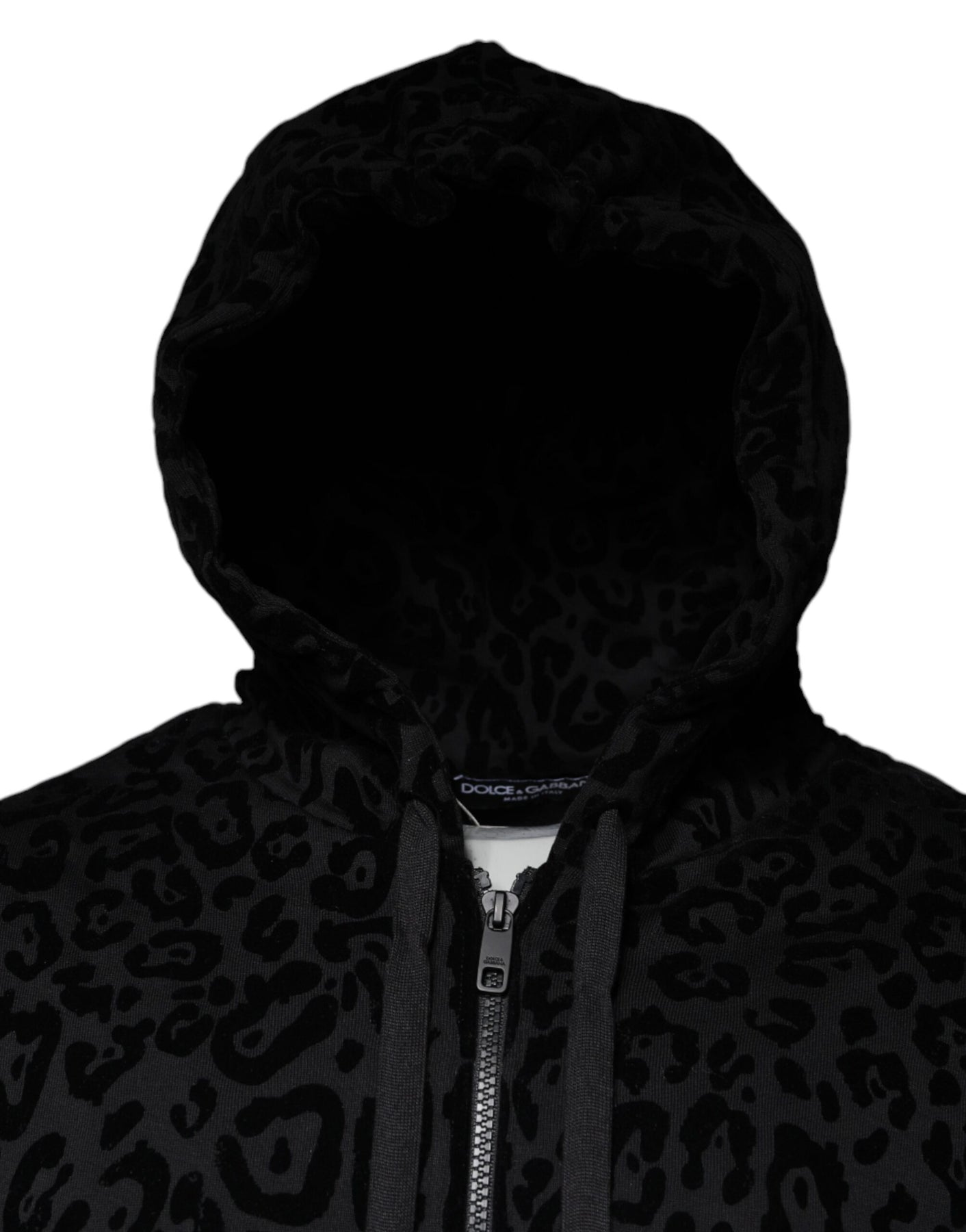 Dolce & Gabbana Black Leopard Cotton Hooded Full Zip Sweater