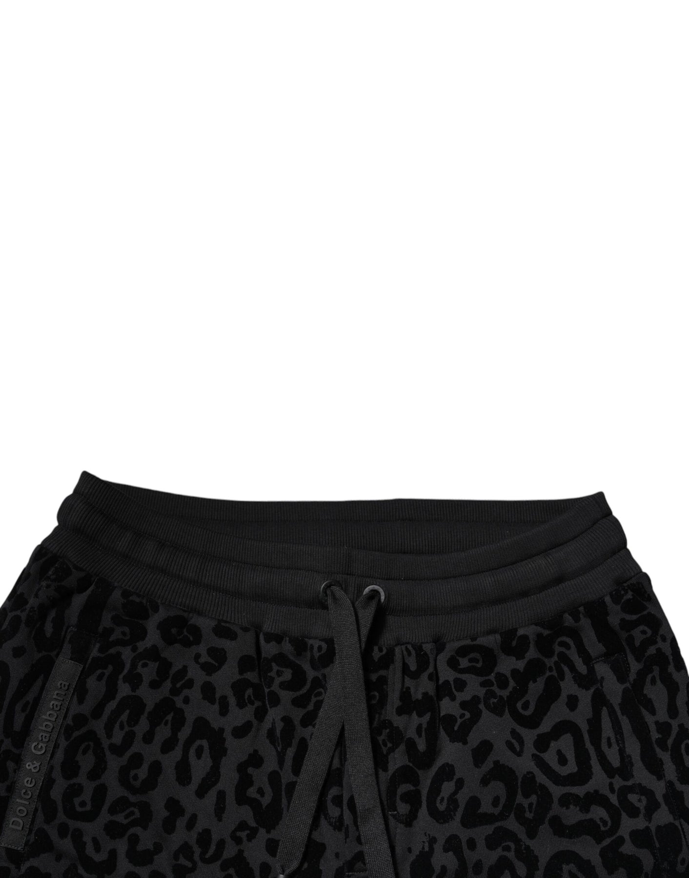 Dolce & Gabbana Black Leopard Cotton Jogger Sweatpants Pants