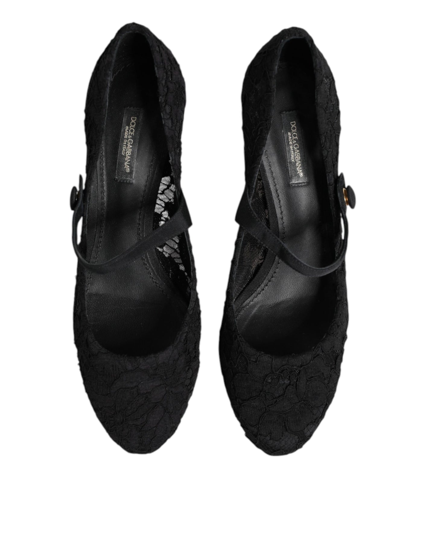 Dolce & Gabbana Black Mary Jane Taormina Lace Pumps Shoes