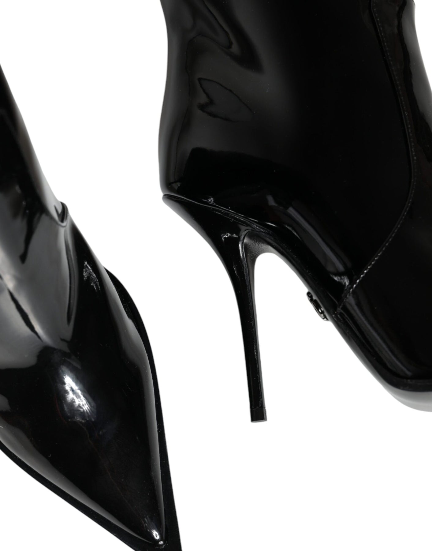 Dolce & Gabbana Black Patent Leather Knee High Boots Shoes
