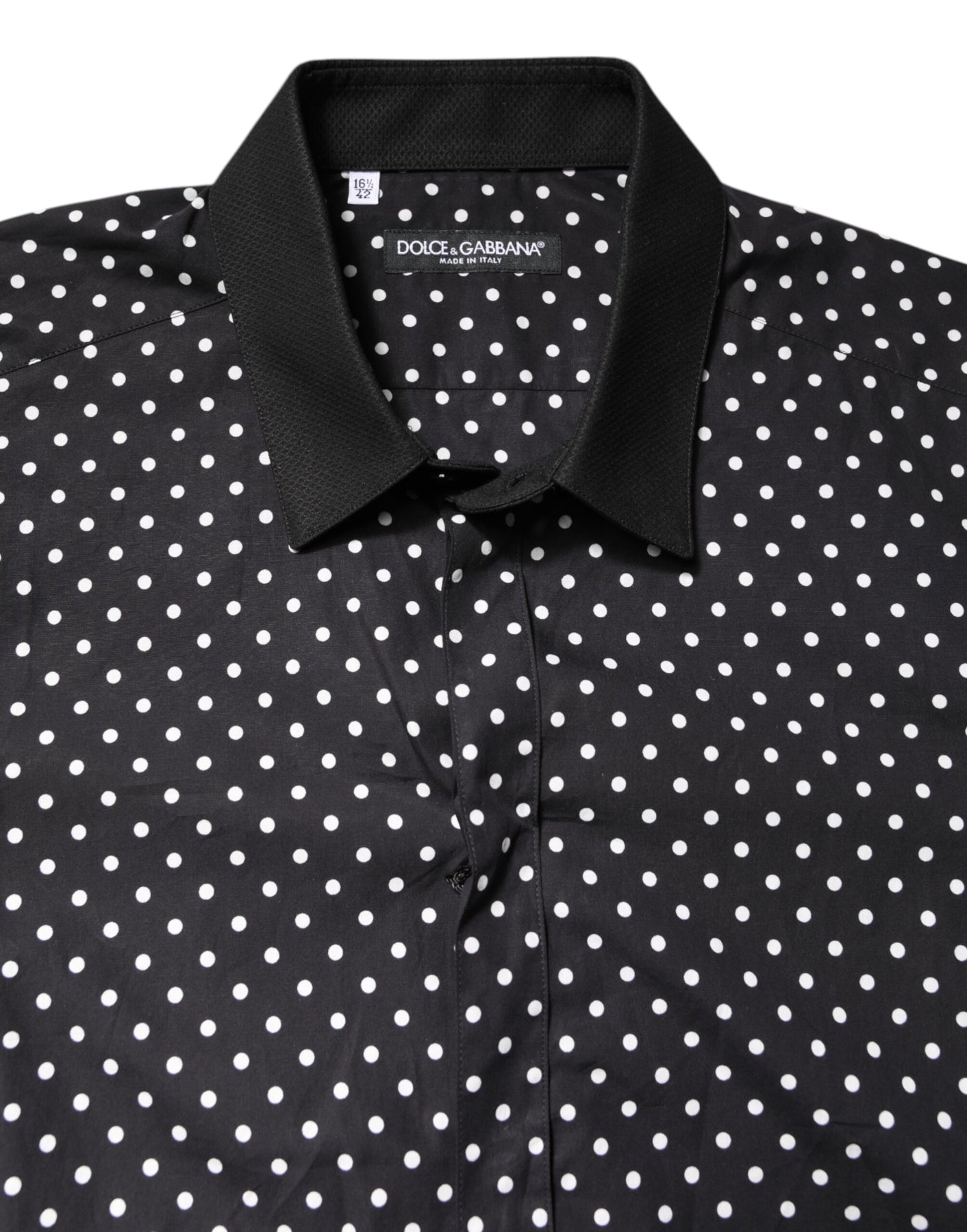 Dolce & Gabbana Black Polka Dot Cotton Formal Dress Shirt