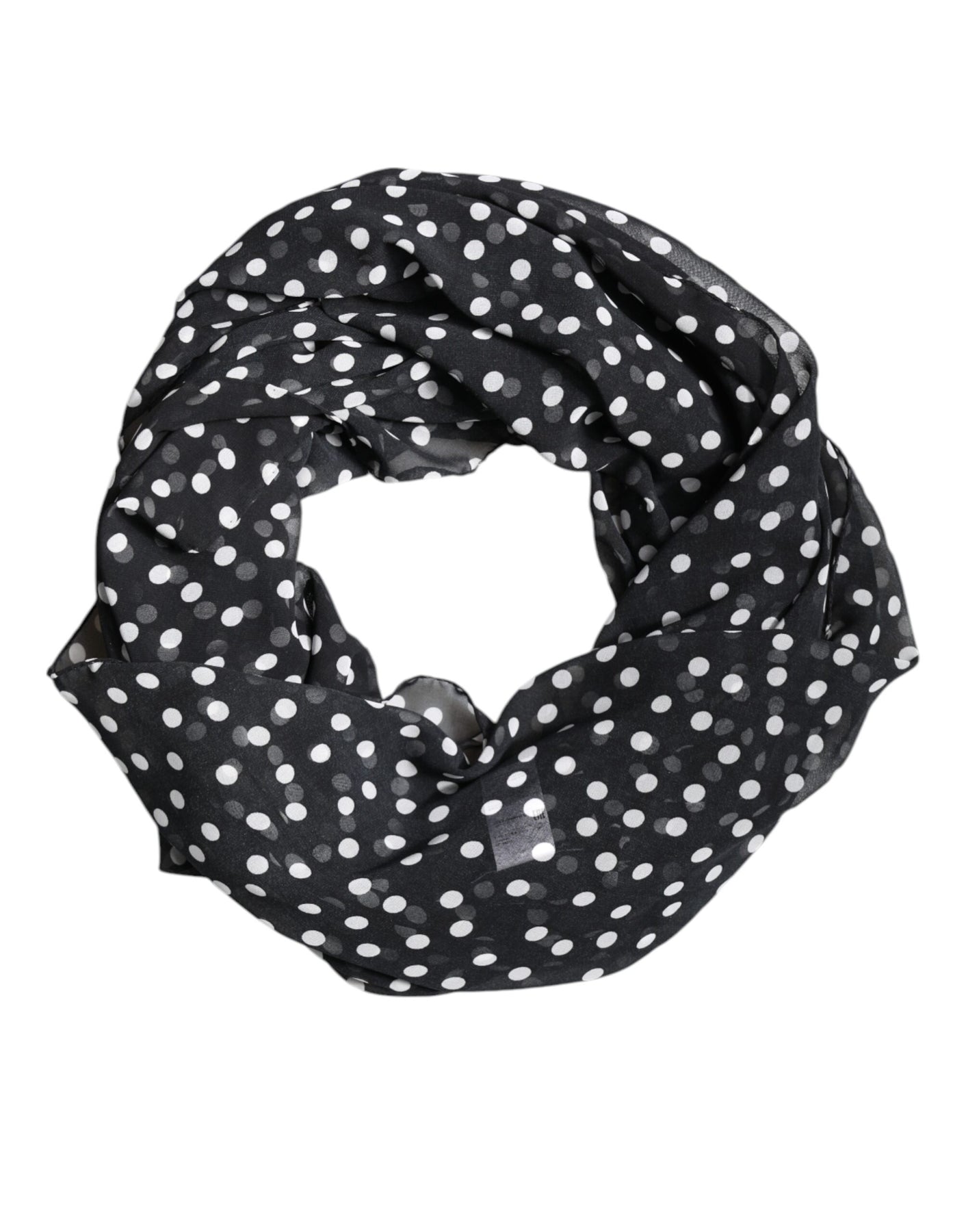Dolce & Gabbana Black Polka Dots Polyester Wrap Shawl Scarf
