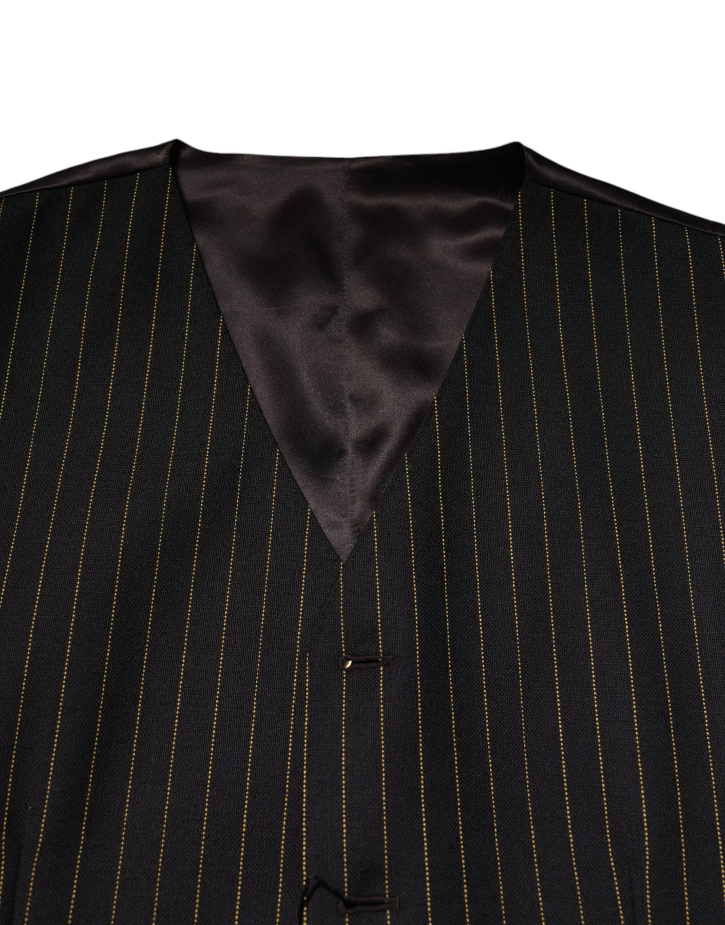 Dolce & Gabbana Black Stripes Wool Formal Men Waistcoat Vest