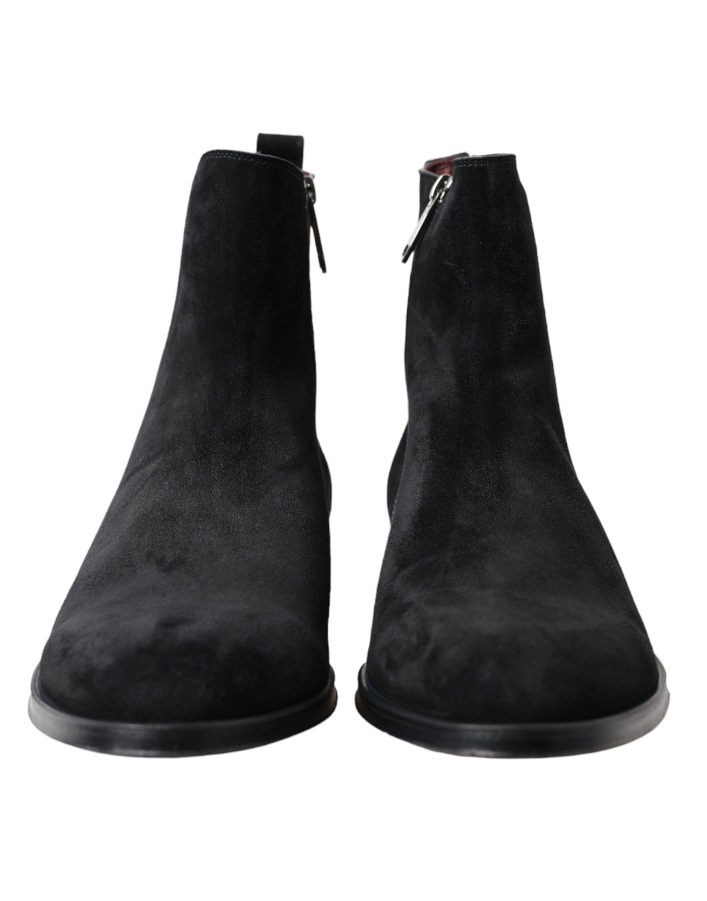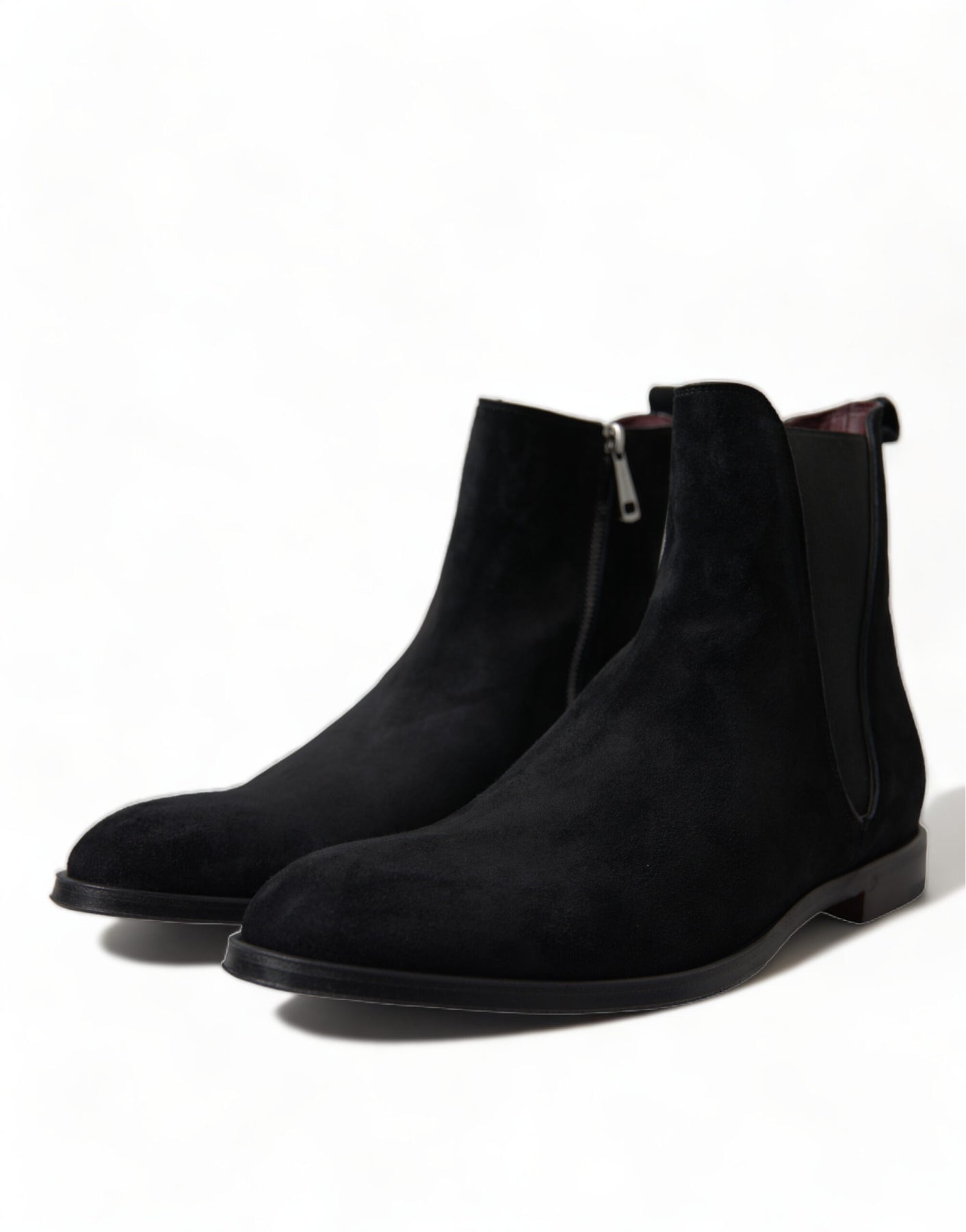 Dolce & Gabbana Black Suede Leather Mid Calf Men Boots Shoes