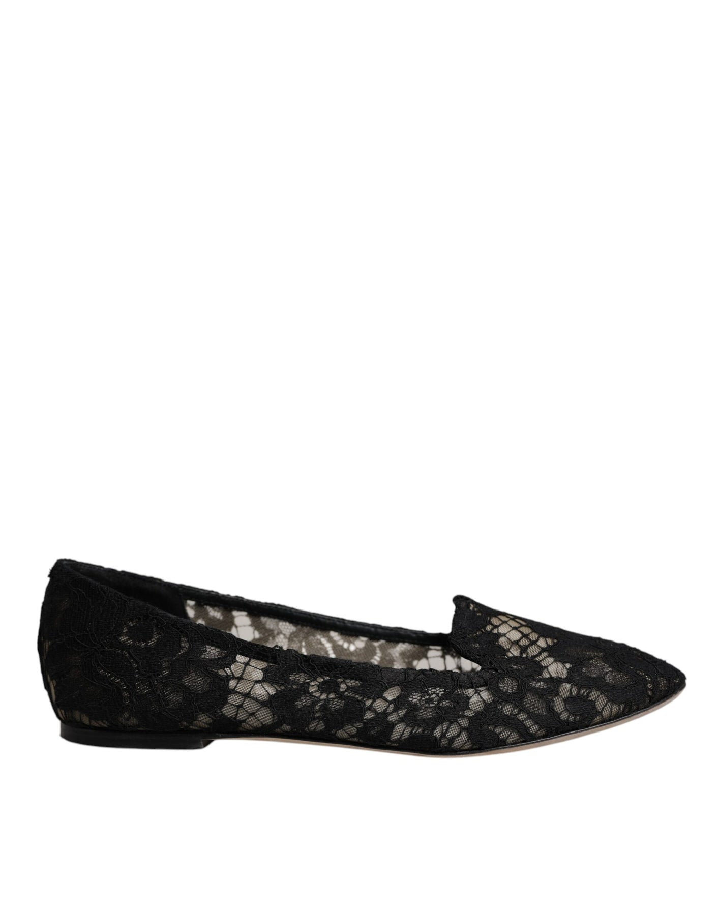 Dolce & Gabbana Black Taormina Lace Slip On Flats Shoes