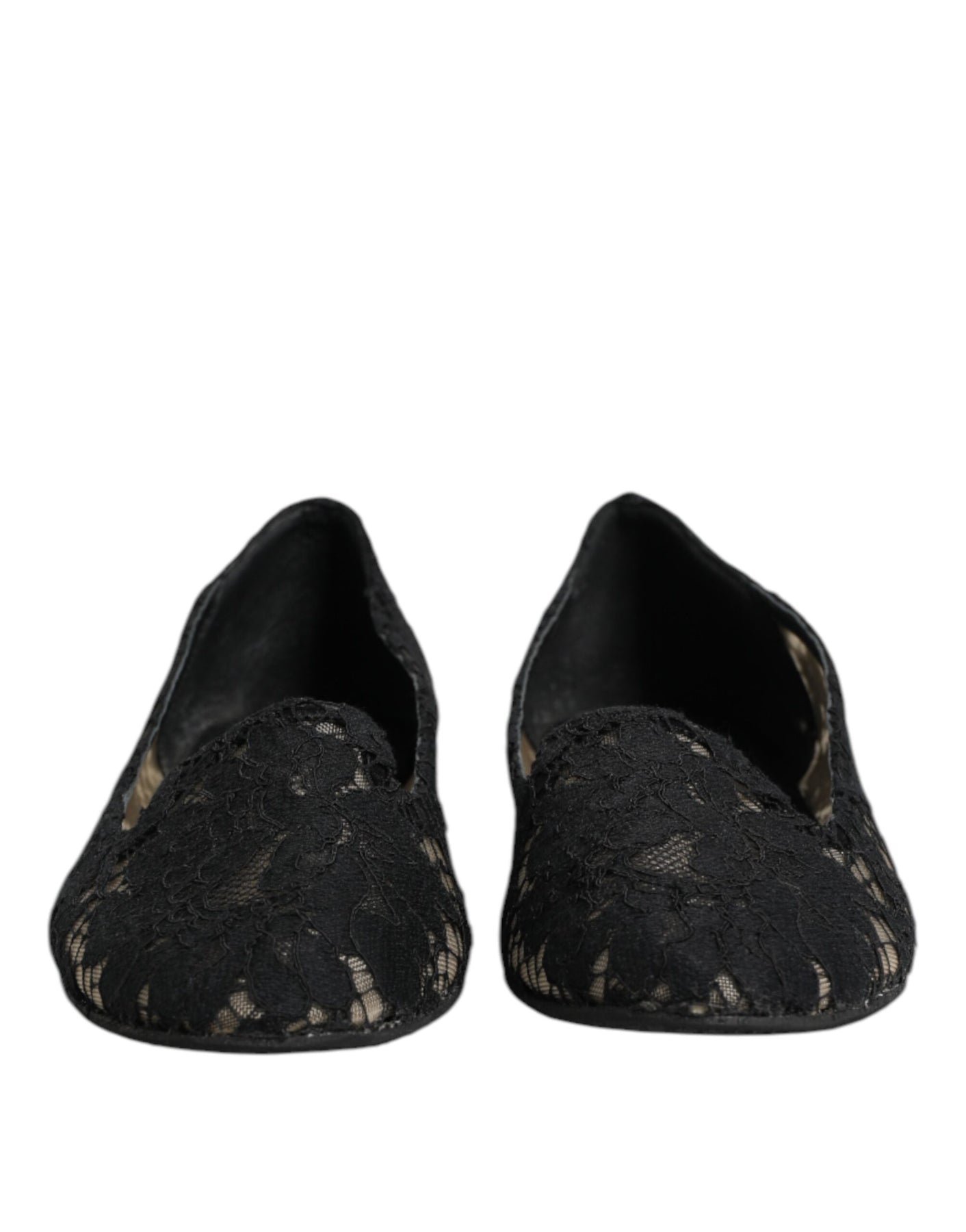 Dolce & Gabbana Black Taormina Lace Slip On Flats Shoes