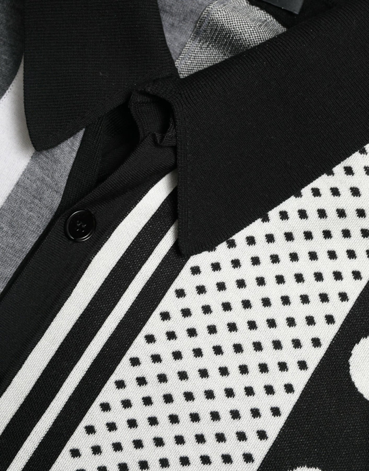 Dolce & Gabbana Black White Jumper Cardigan Polo Sweater