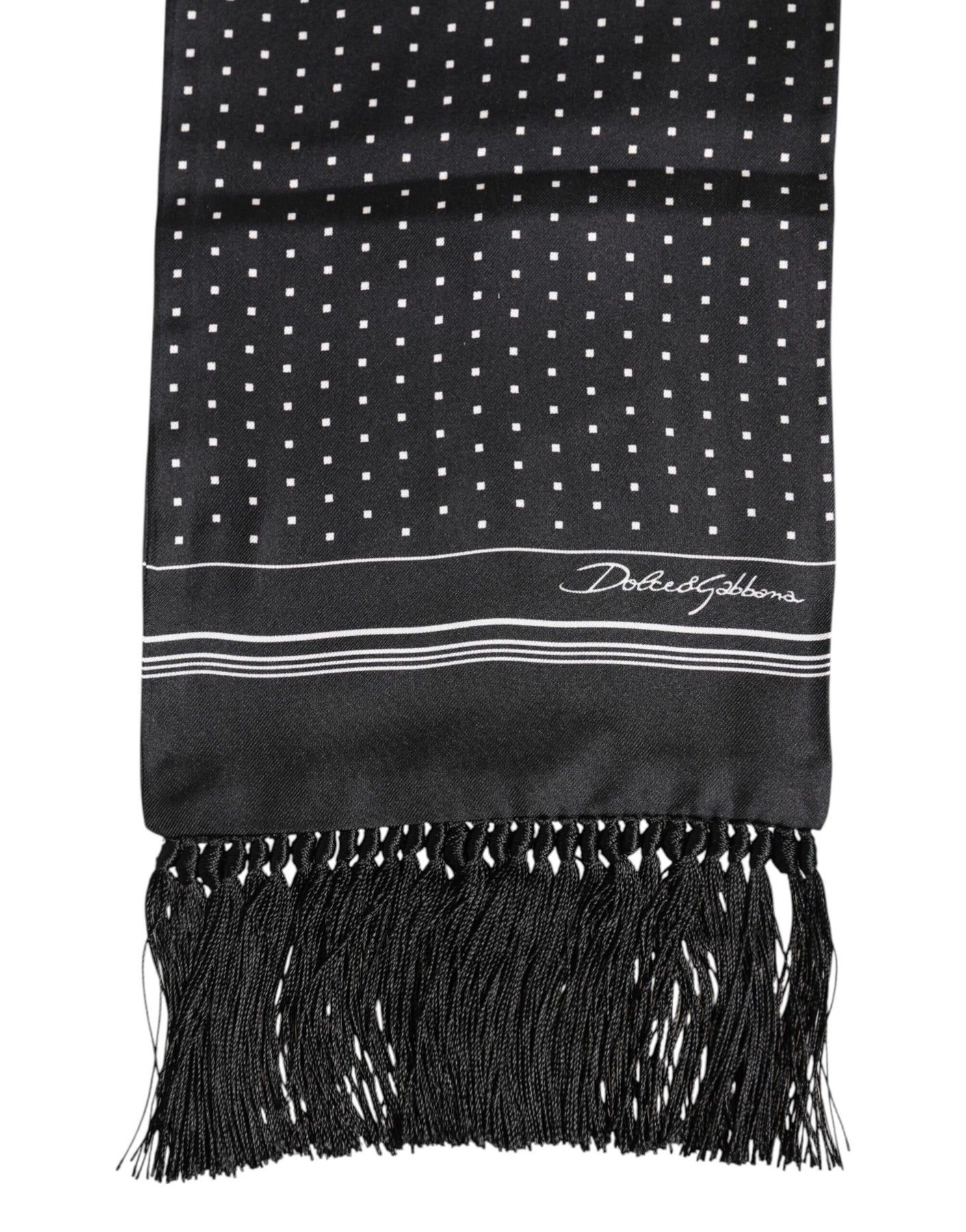 Dolce & Gabbana Black White Polka Dot Fringes Foulard Scarf