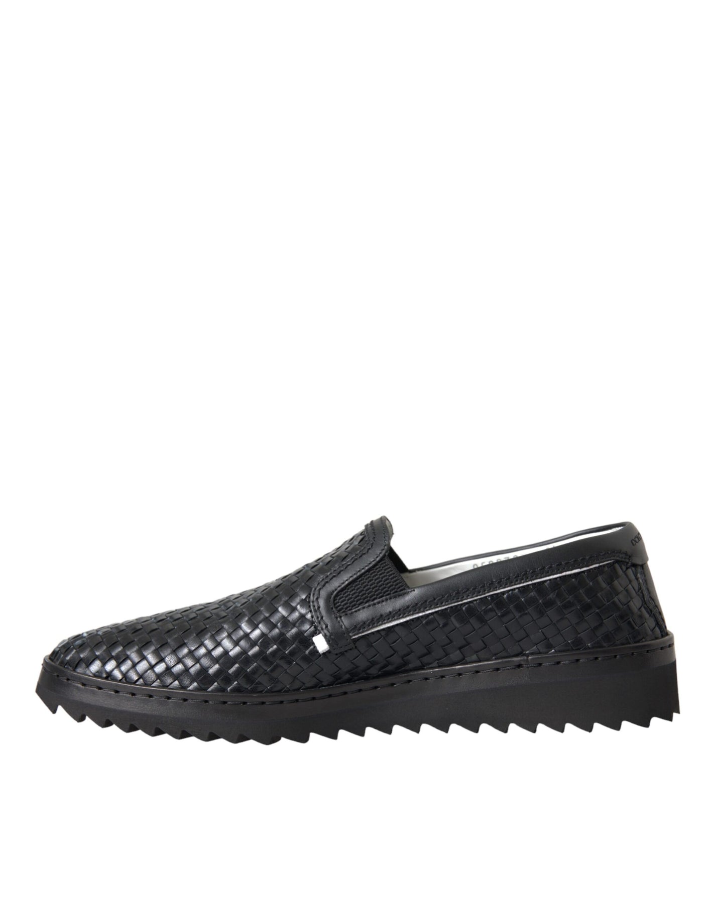 Dolce & Gabbana Black Woven Buffalo Leather Men Loafers Shoes