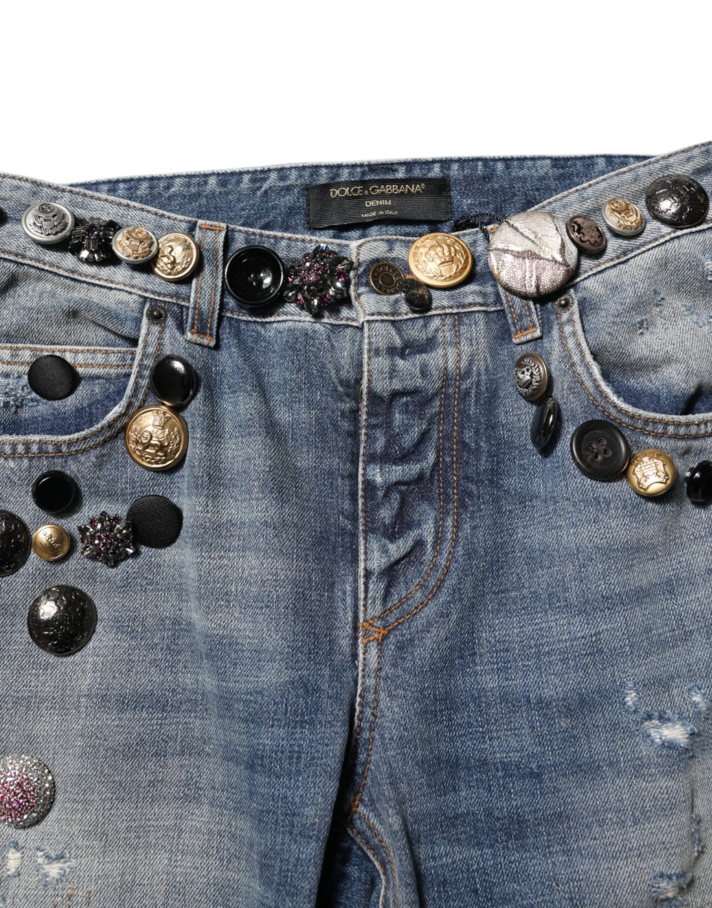 Dolce & Gabbana Blue Embellished Tattered SkinnyDenim Jeans