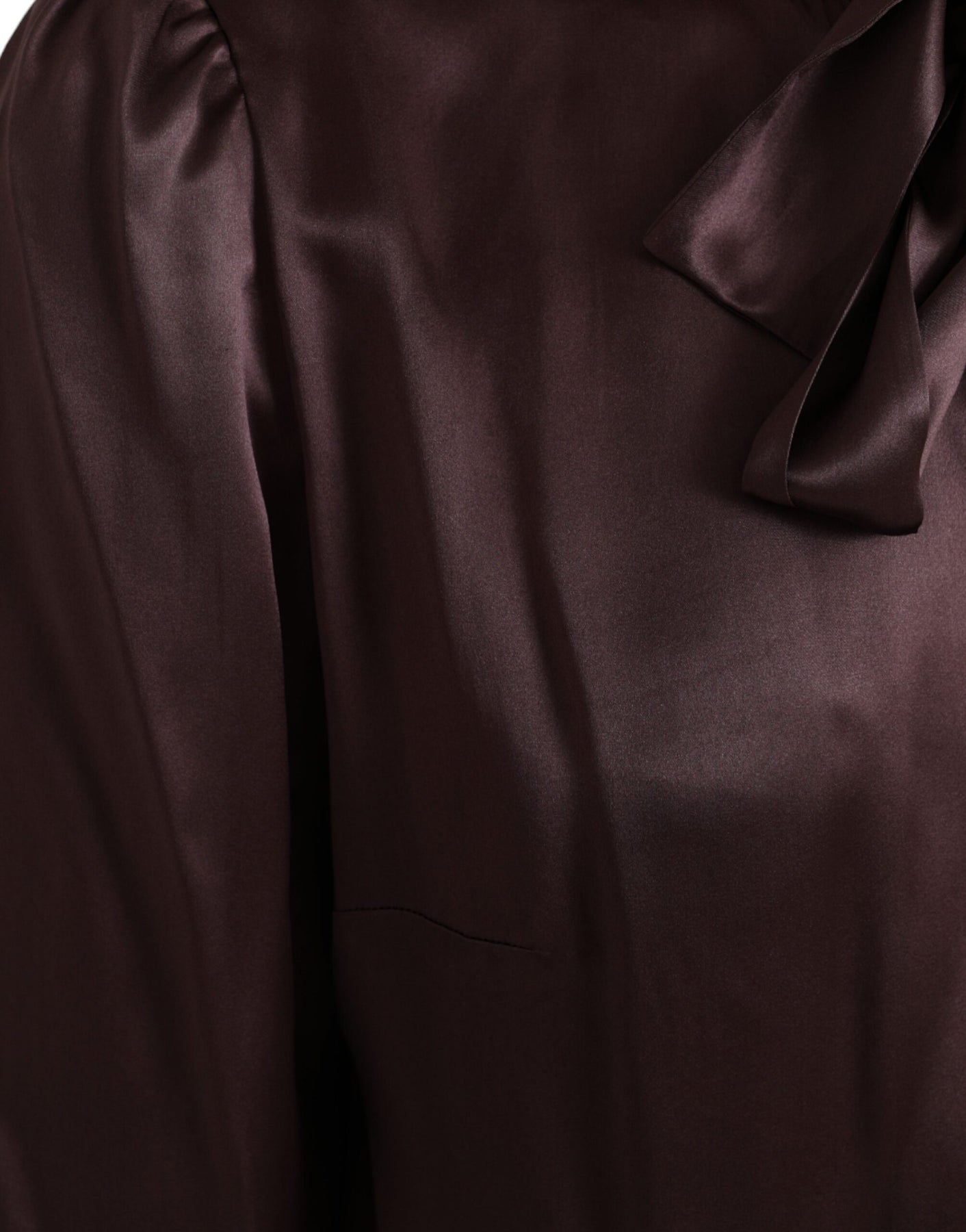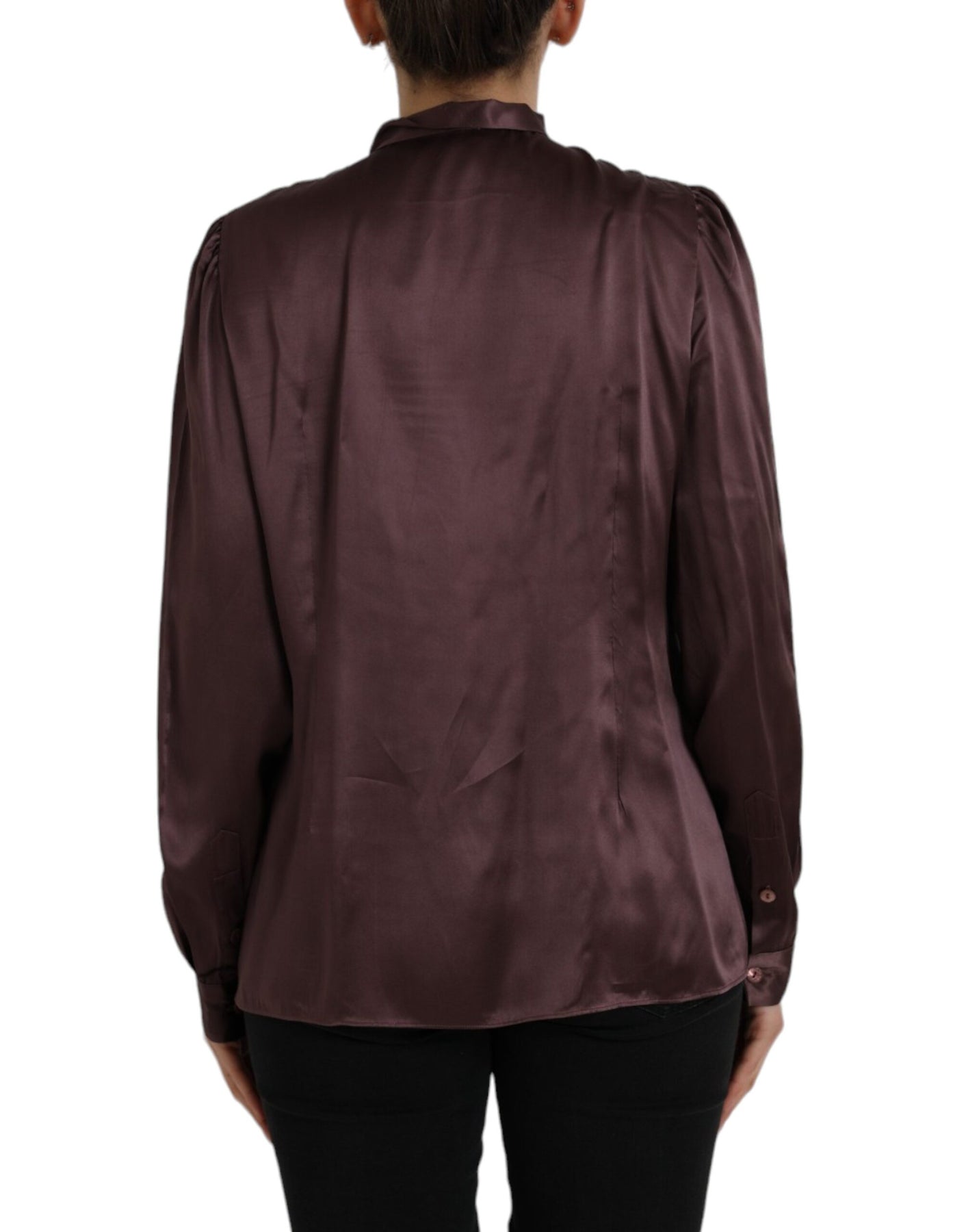 Dolce & Gabbana Brown Ascot Collar Long Sleeve Top Blouse
