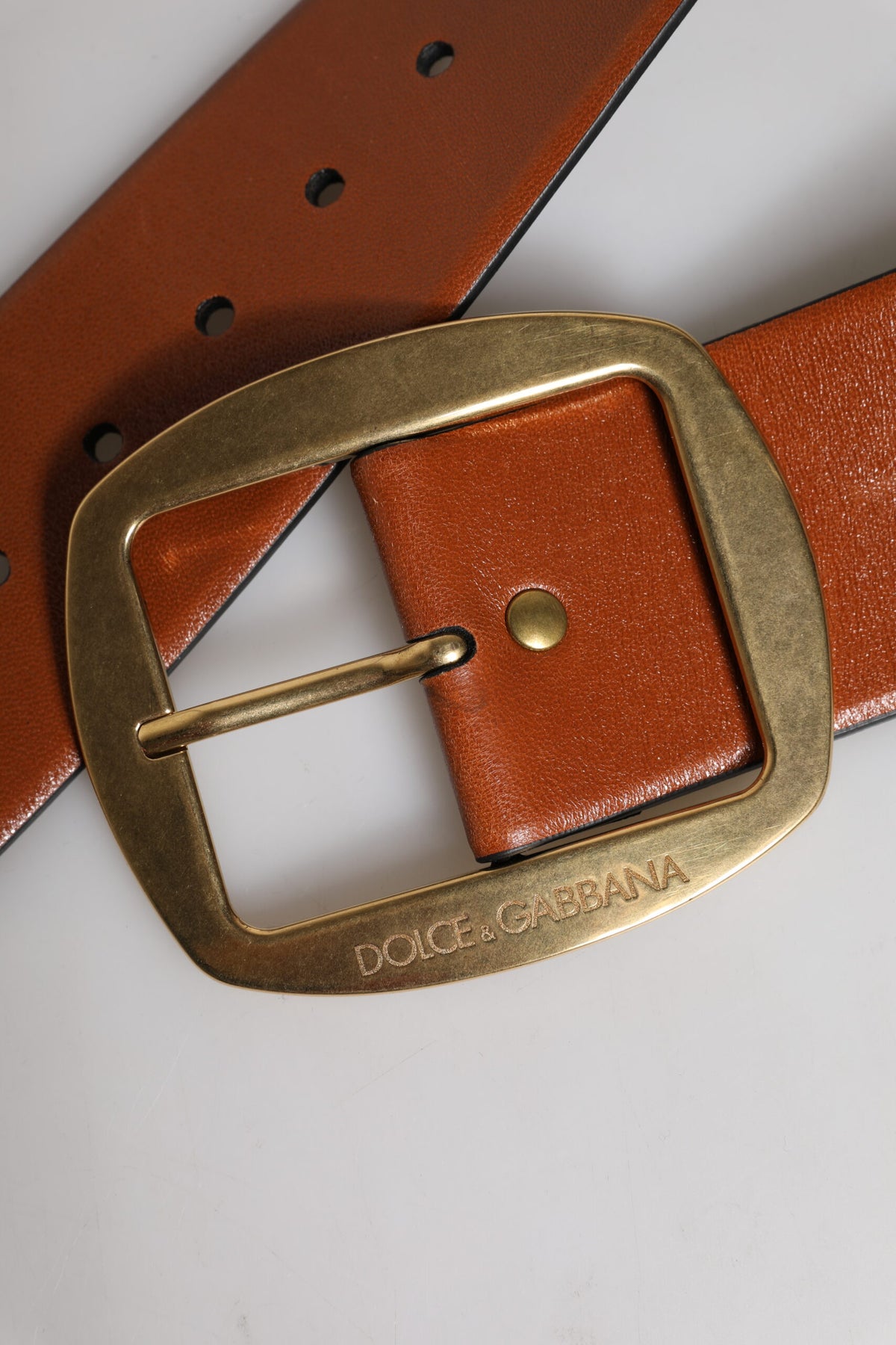 Dolce & Gabbana Brown Leather Gold Metal Buckle Classic Belt