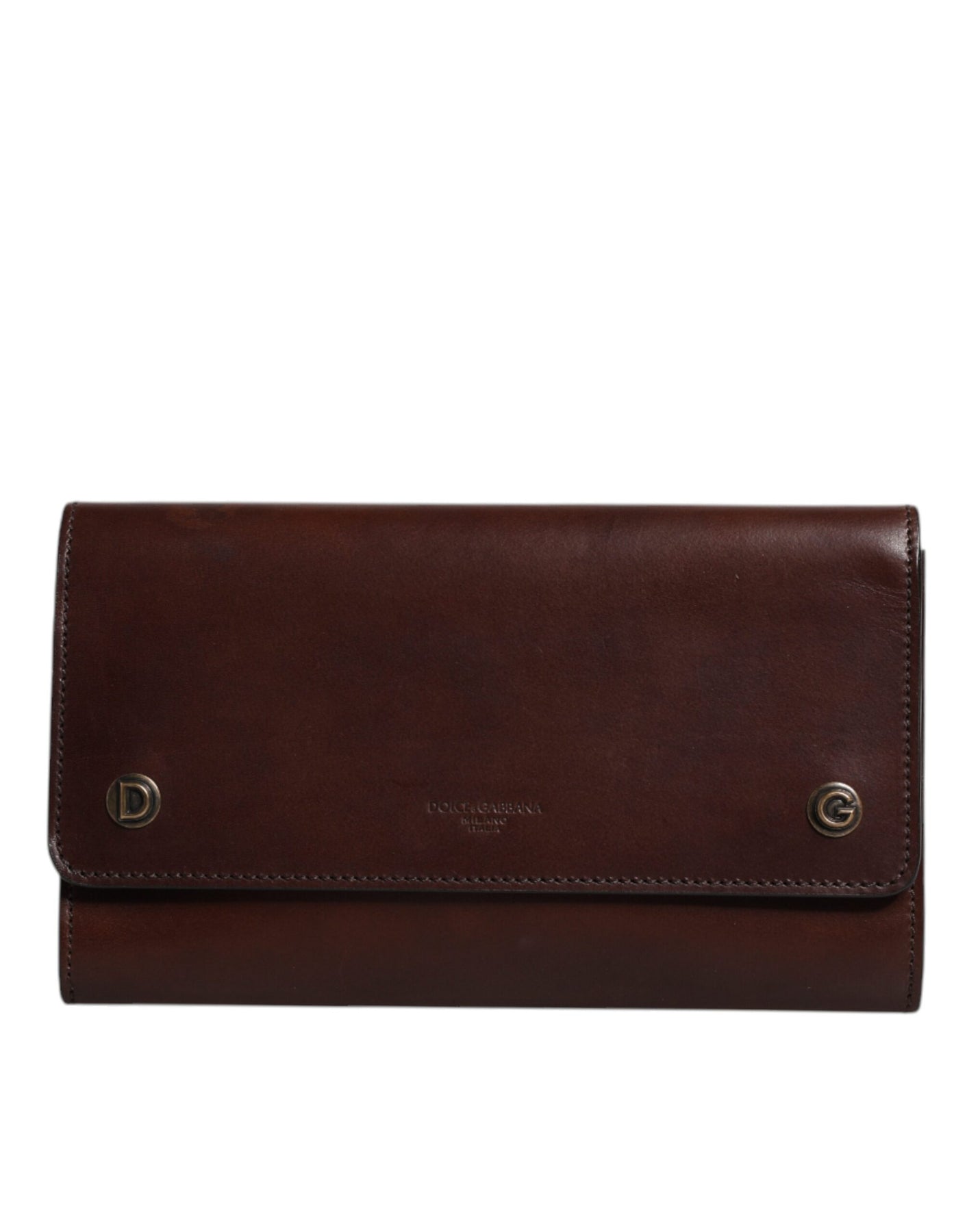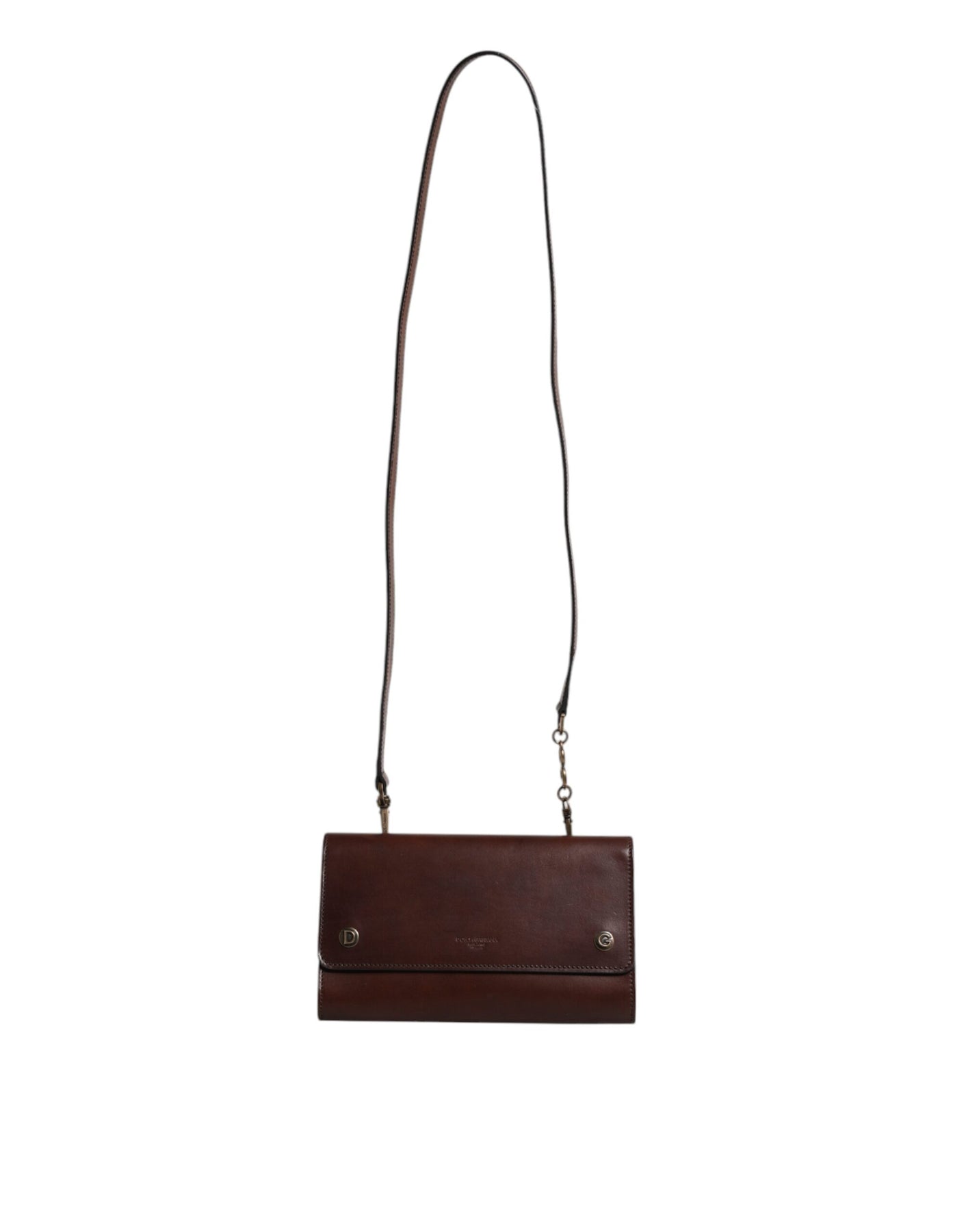 Dolce & Gabbana Brown Leather Logo Embossed Crossbody Bag