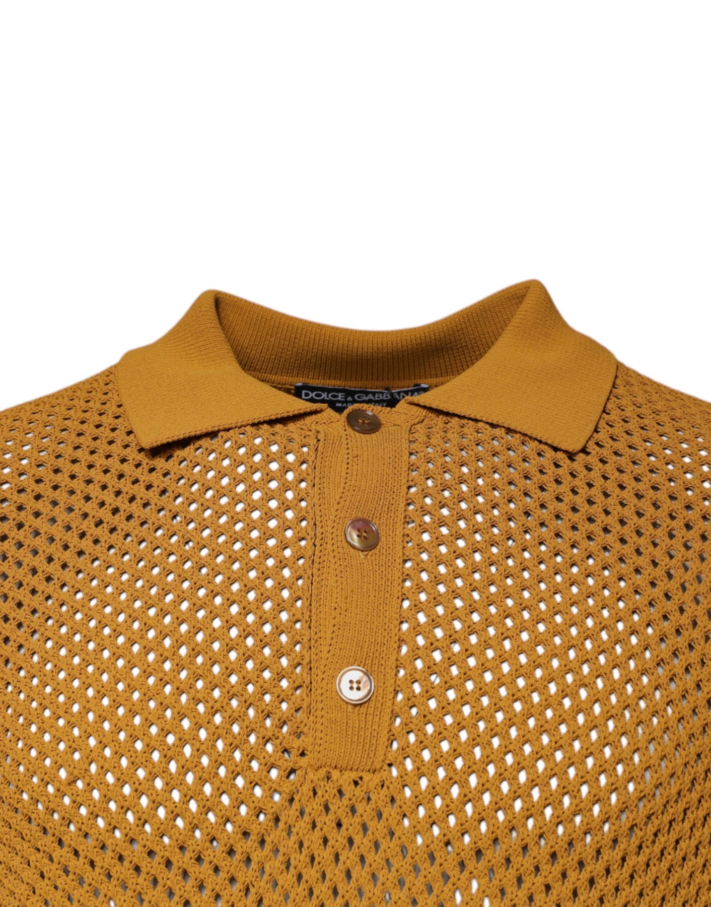 Dolce & Gabbana Brown Perforated Collared Short Sleeves T-shirt