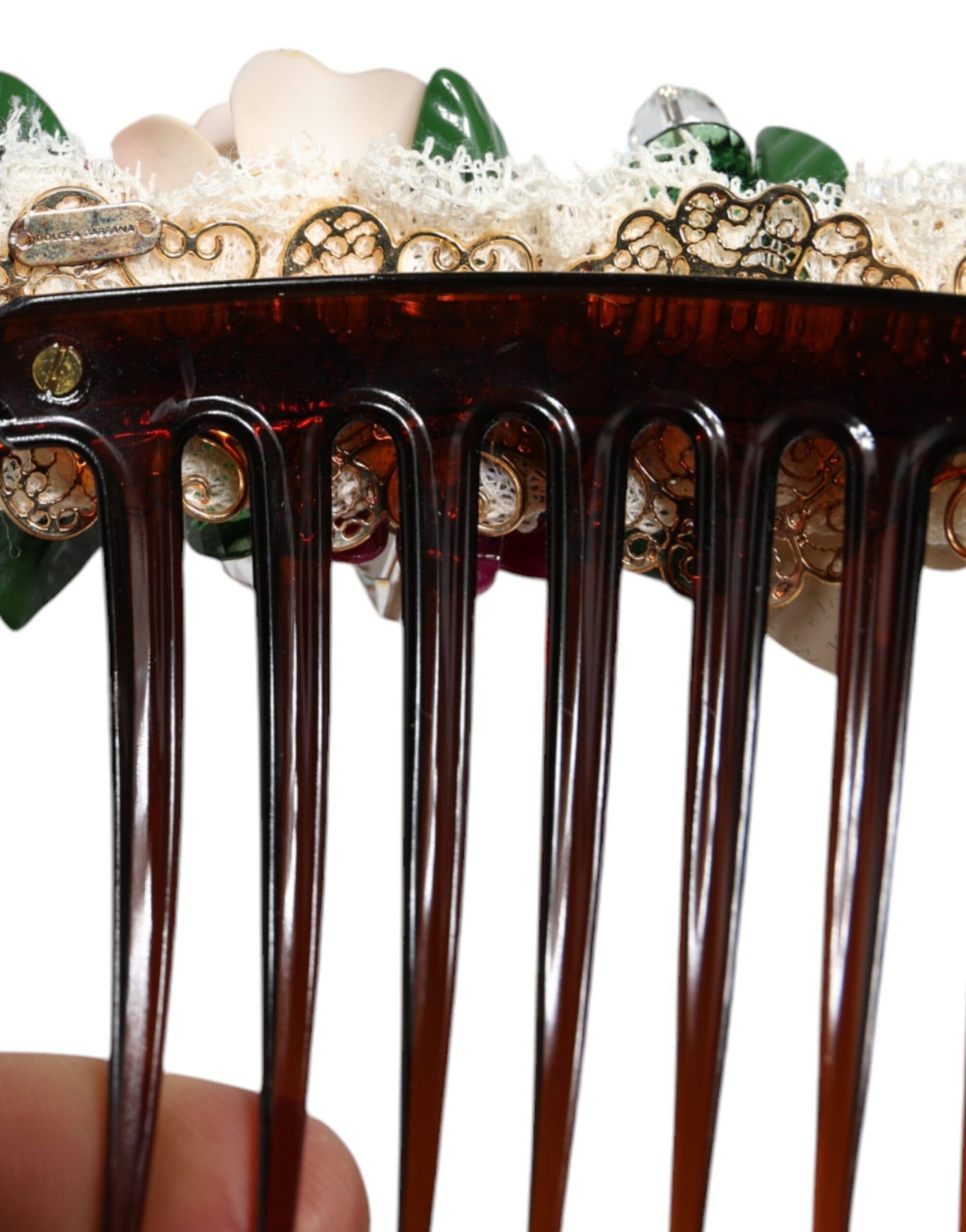 Dolce & Gabbana Brown Plastic Crystal Floral Women Hair Comb