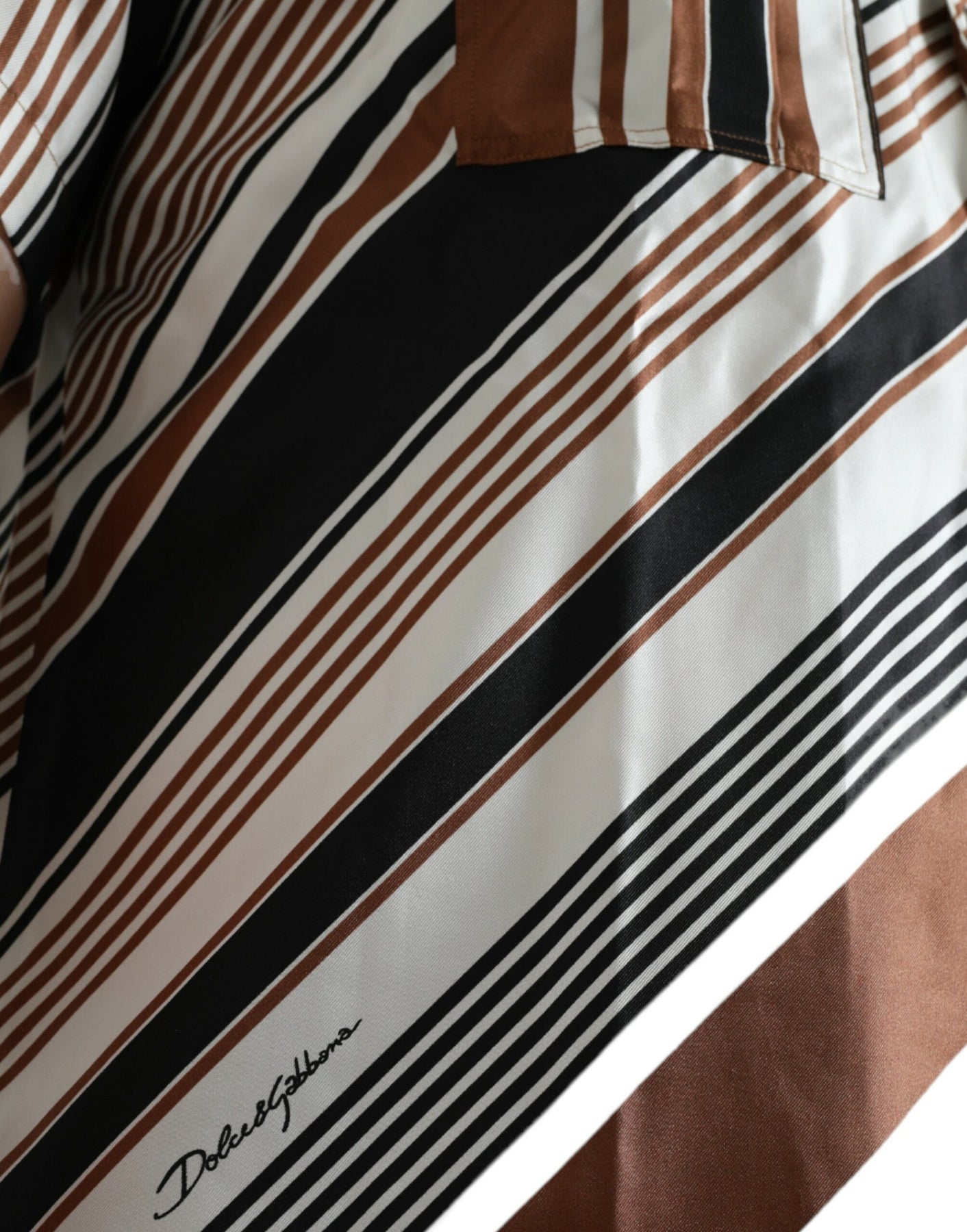 Dolce & Gabbana Brown White Silk Striped Short Sleeve Shirt