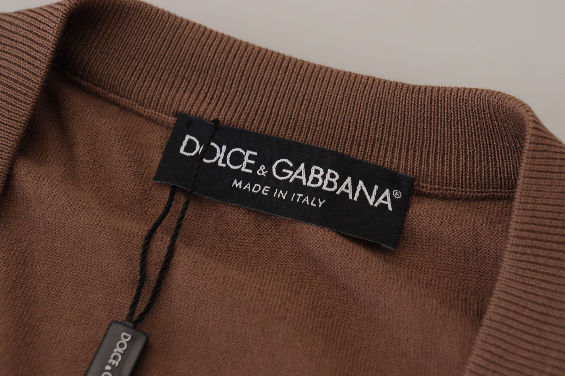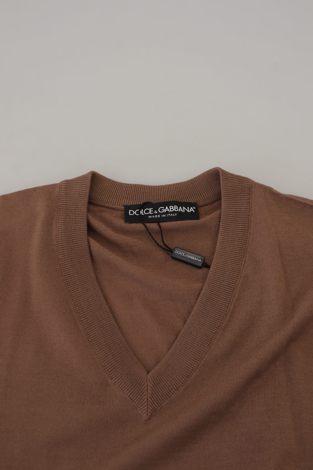 Dolce & Gabbana Brown Wool Men V-neck Pullover Sweater