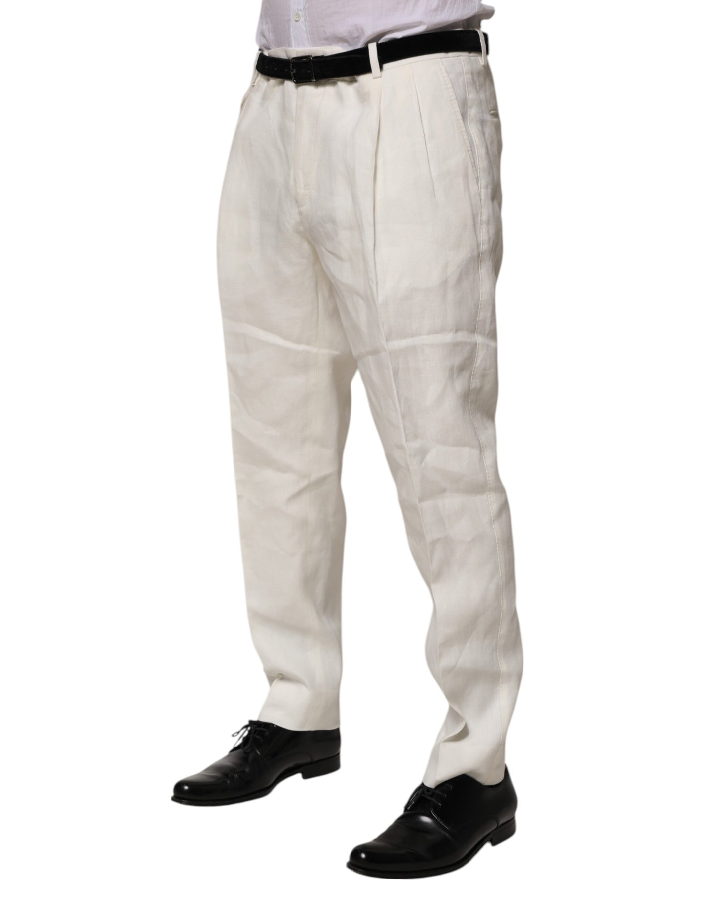 Dolce & Gabbana Cream Linen Dress Slim Formal Trouser Pants