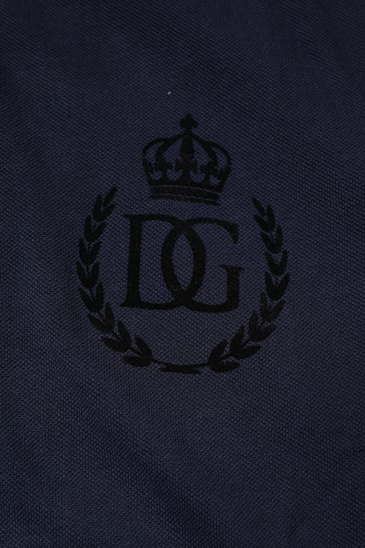 Dolce & Gabbana Dark Blue Cotton Crown Collared Polo T-shirt
