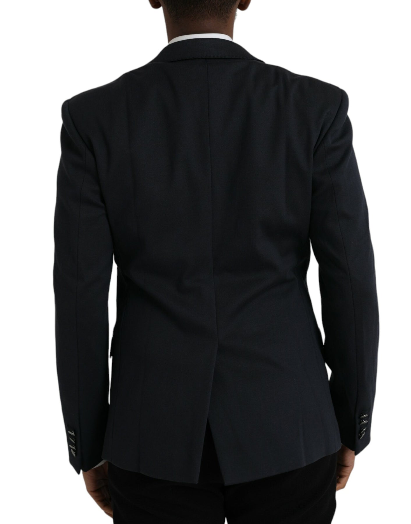 Dolce & Gabbana Dark Blue Cotton Single Breasted Coat Blazer