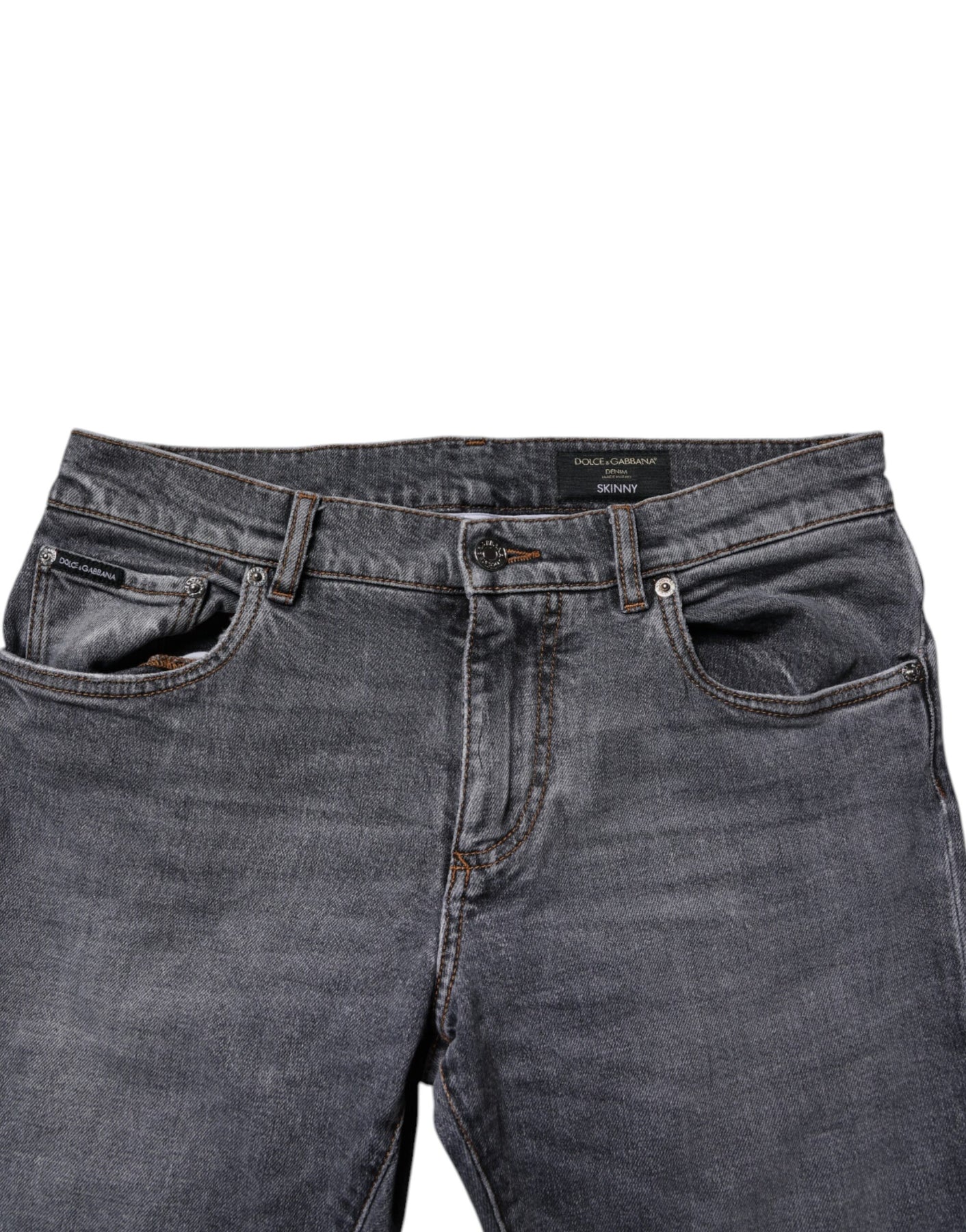 Gorgeous brand new, 100% Authentic Dolce & Gabbana Dark Gray Skinny Jeans, crafted from premium cotton with added stretch for superior comfort and flexibility. Featuring a sleek skinny silhouette, classic five-pocket styling, and a secure zip-button closure, these jeans deliver a modern, versatile look perfect for casual and smart-casual outfits.