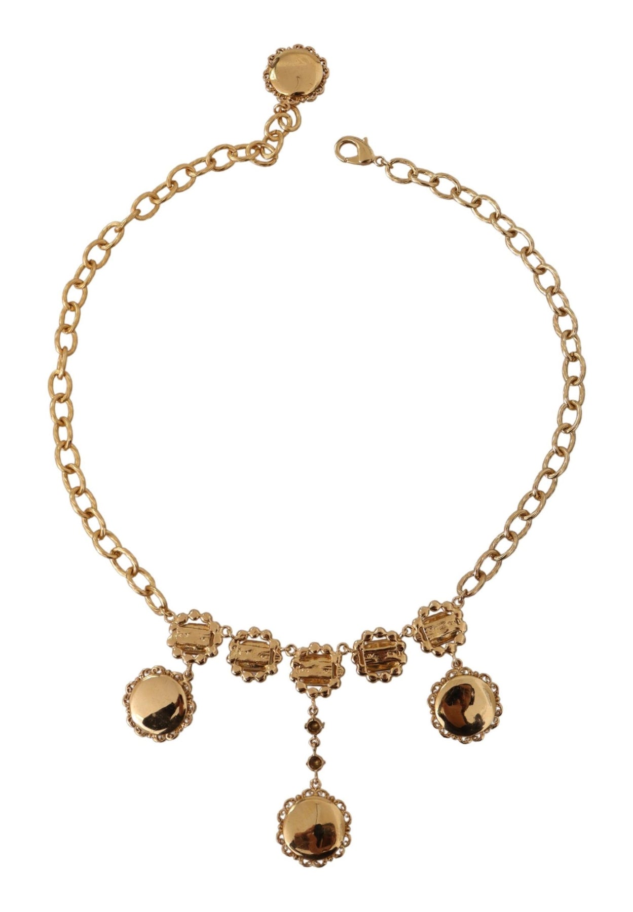 Dolce & Gabbana Gold Clock Statement Crystal Chain Necklace