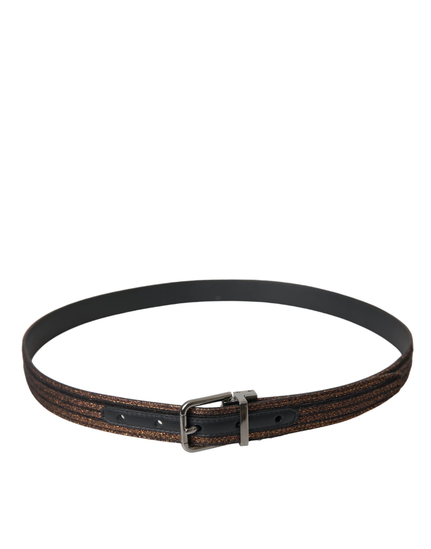 Dolce & Gabbana Gold Jacquard Stripes Silver Metal Buckle Belt
