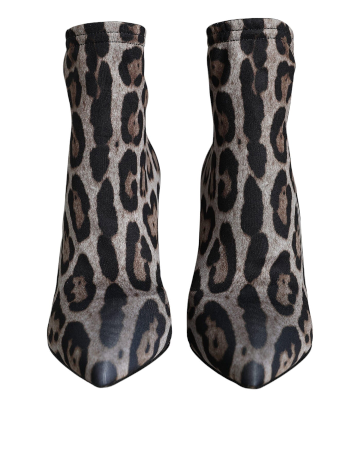 Dolce & Gabbana Gray Leopard Stretch Heels Ankle Boots Shoes
