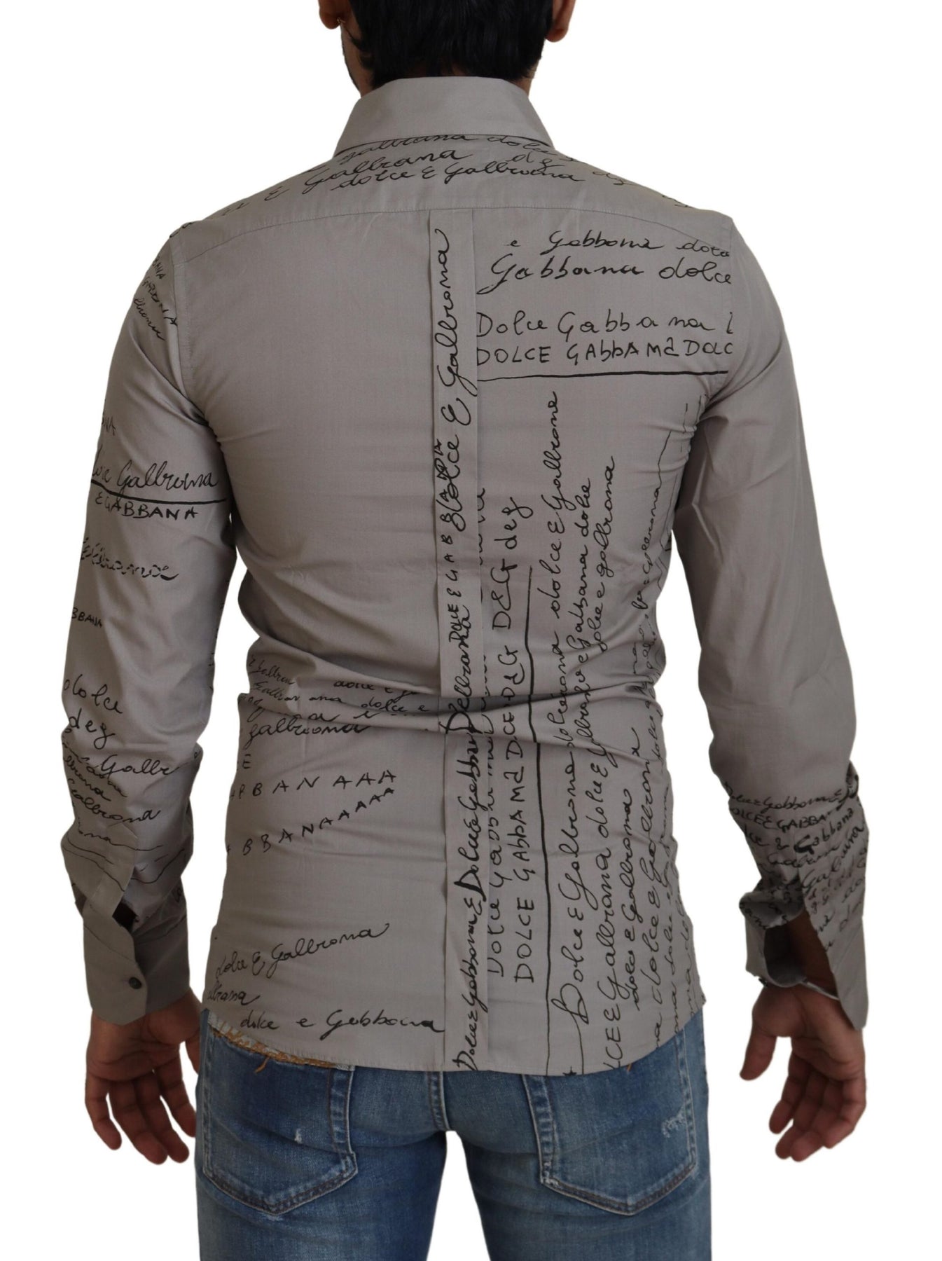 Dolce & Gabbana Gray Printed Cotton Slim Dress GOLD Shirt