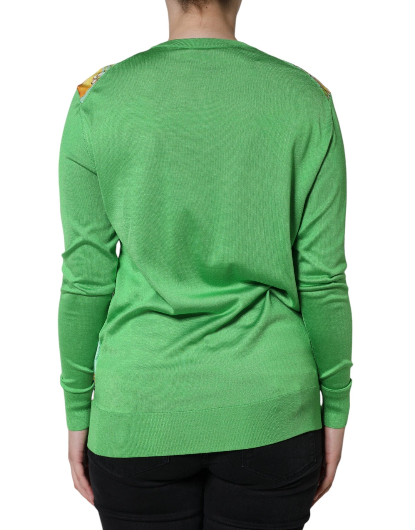 Dolce & Gabbana Green Silk Granita Al Limone Long Sleeves Sweater
