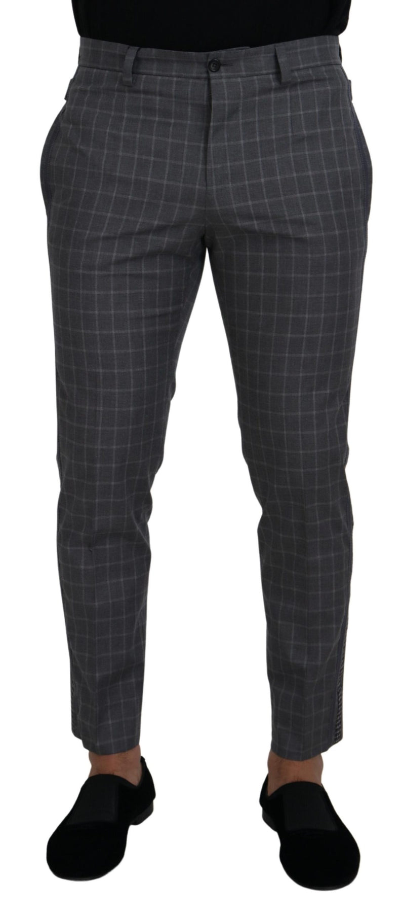 Dolce & Gabbana Grey Cotton Checkered Chino Pants
