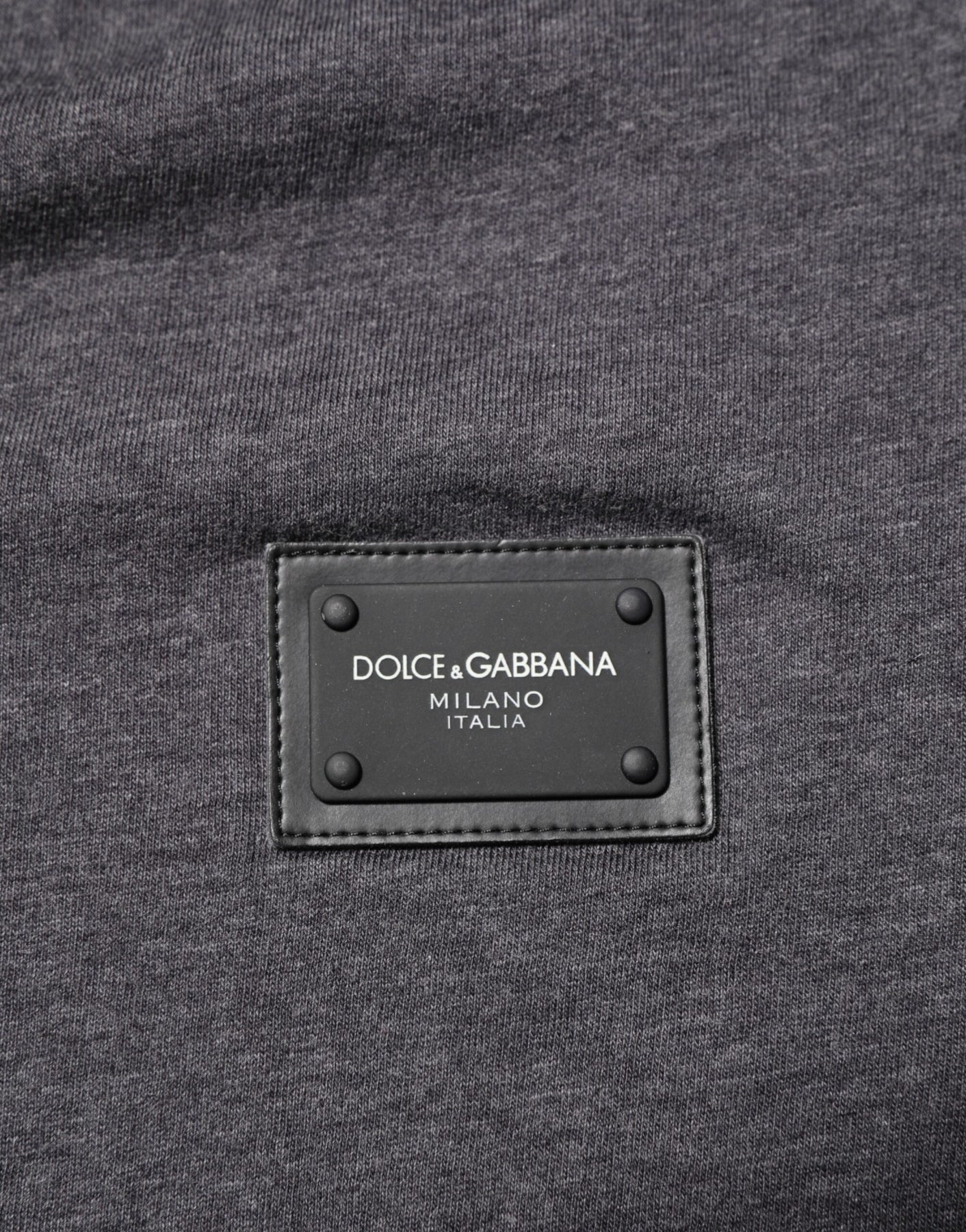 Dolce & Gabbana Grey Cotton V-Neck Logo Plaque Melange T-Shirt