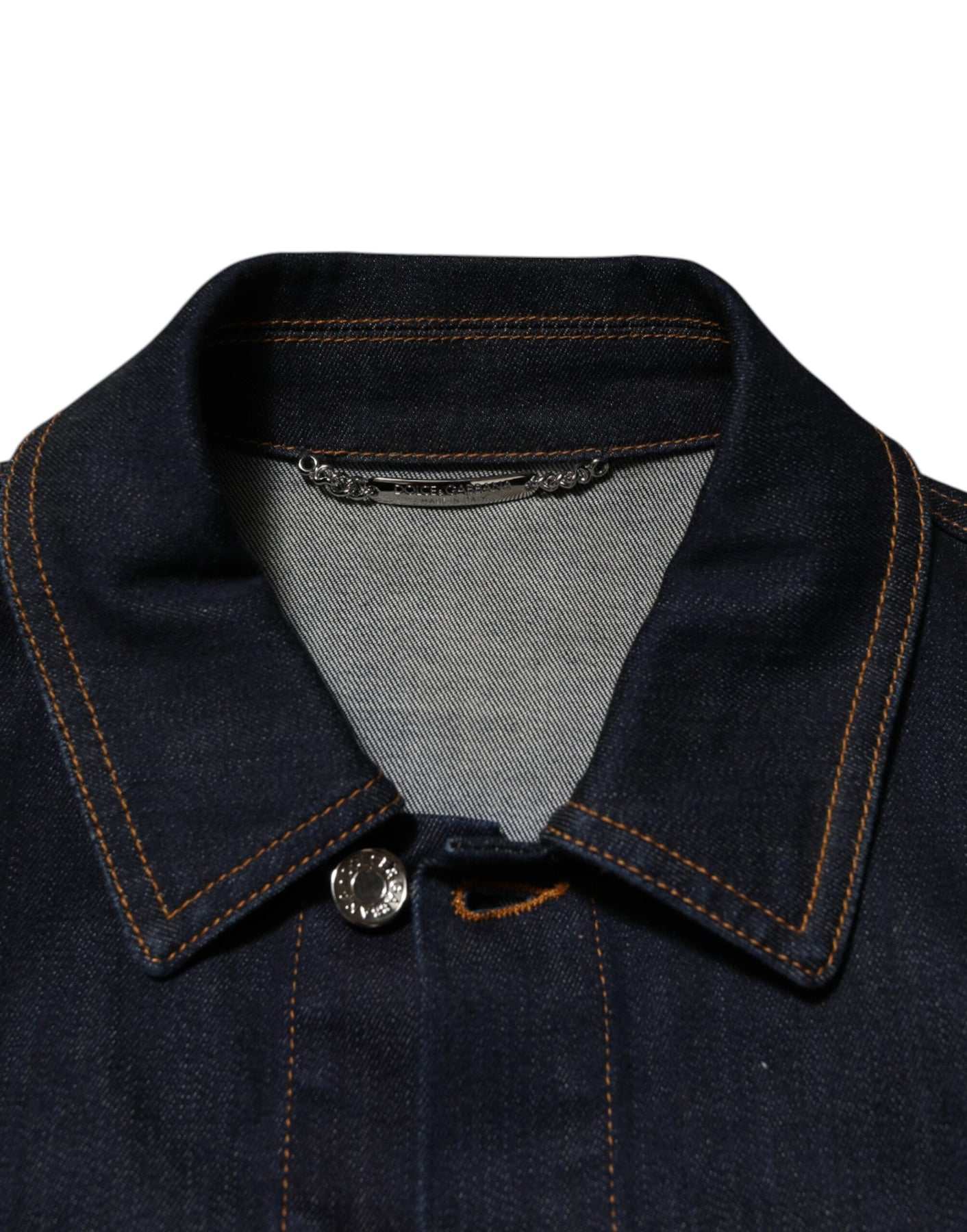 Dolce & Gabbana Indigo Blue Denim Slim Fit Logo Patch Jacket
