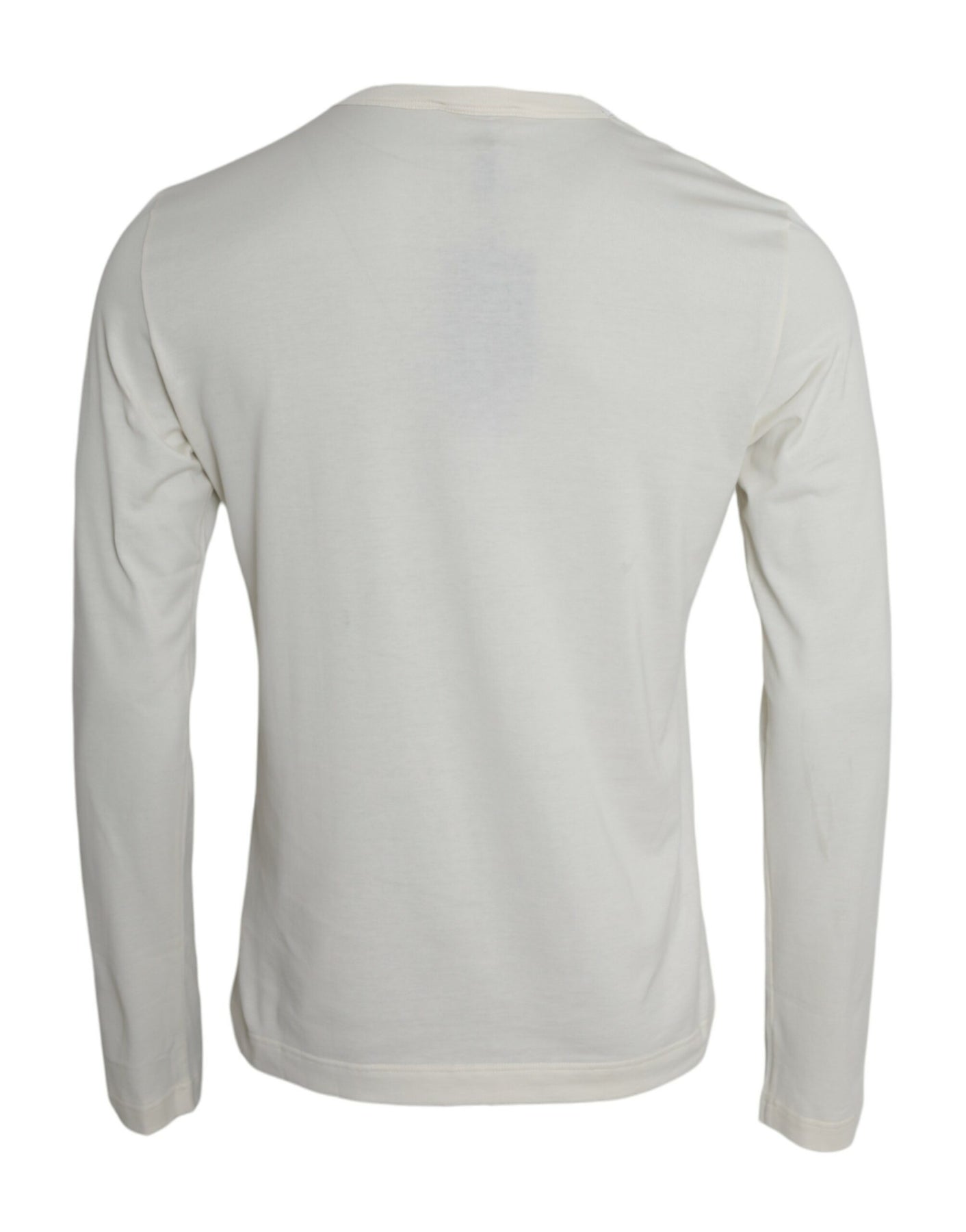 Dolce & Gabbana Off White Cotton Round Neck Pullover Sweater