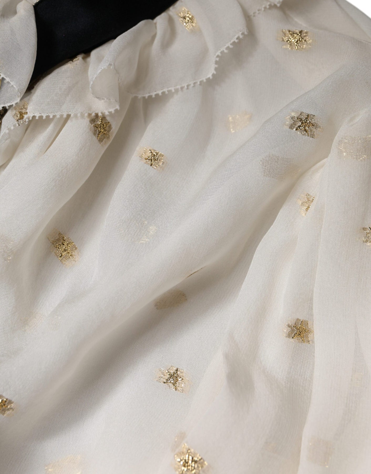 Dolce & Gabbana Off White Silk Blend Ascot Collar Blouse Top
