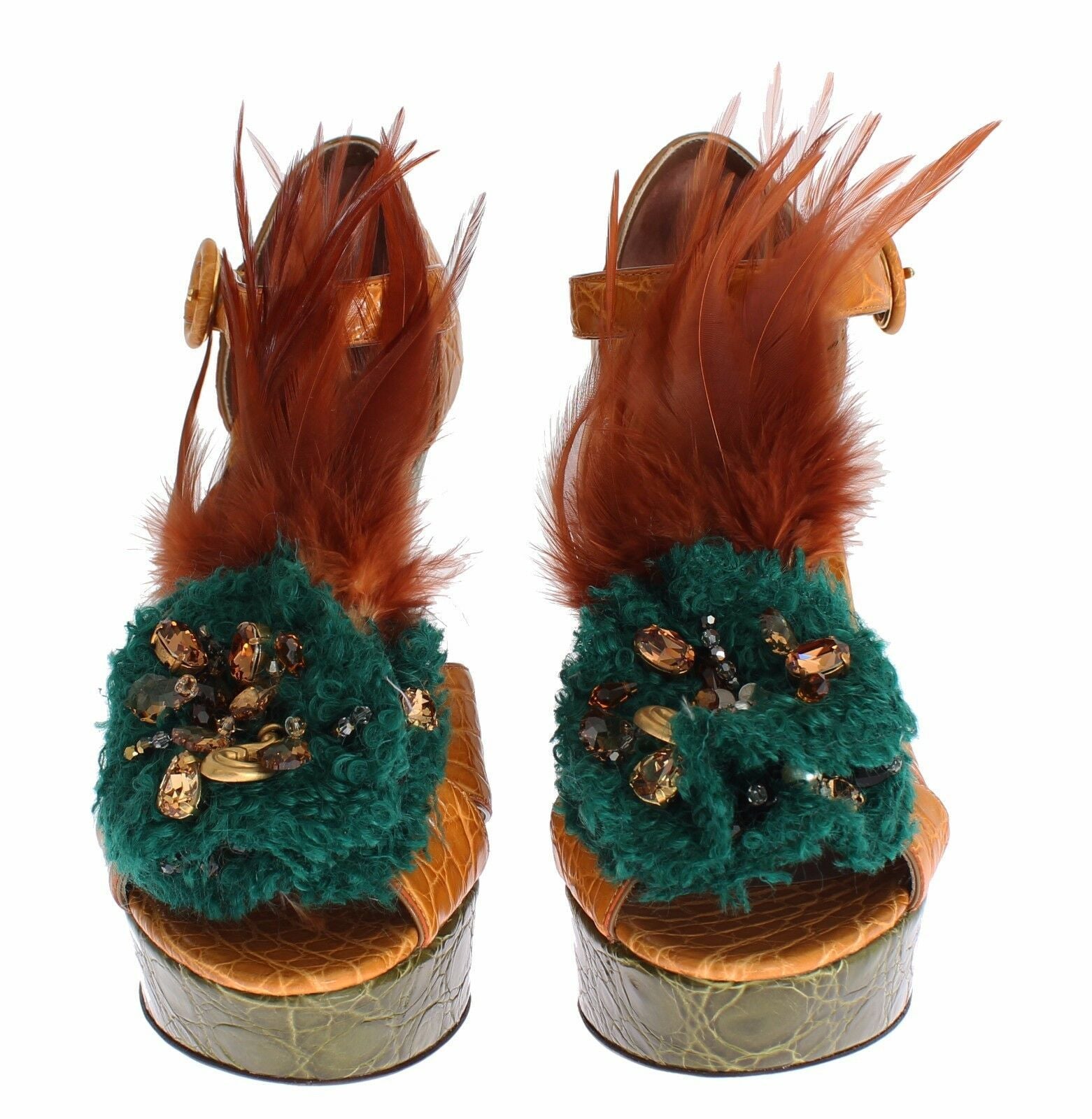 Gorgeous, brand new with tags, 100% Authentic Dolce & Gabbana multicolor skin crystal ankle strap platform sandals shoes. This items comes from the exclusive MainLine Dolce & Gabbana collection.