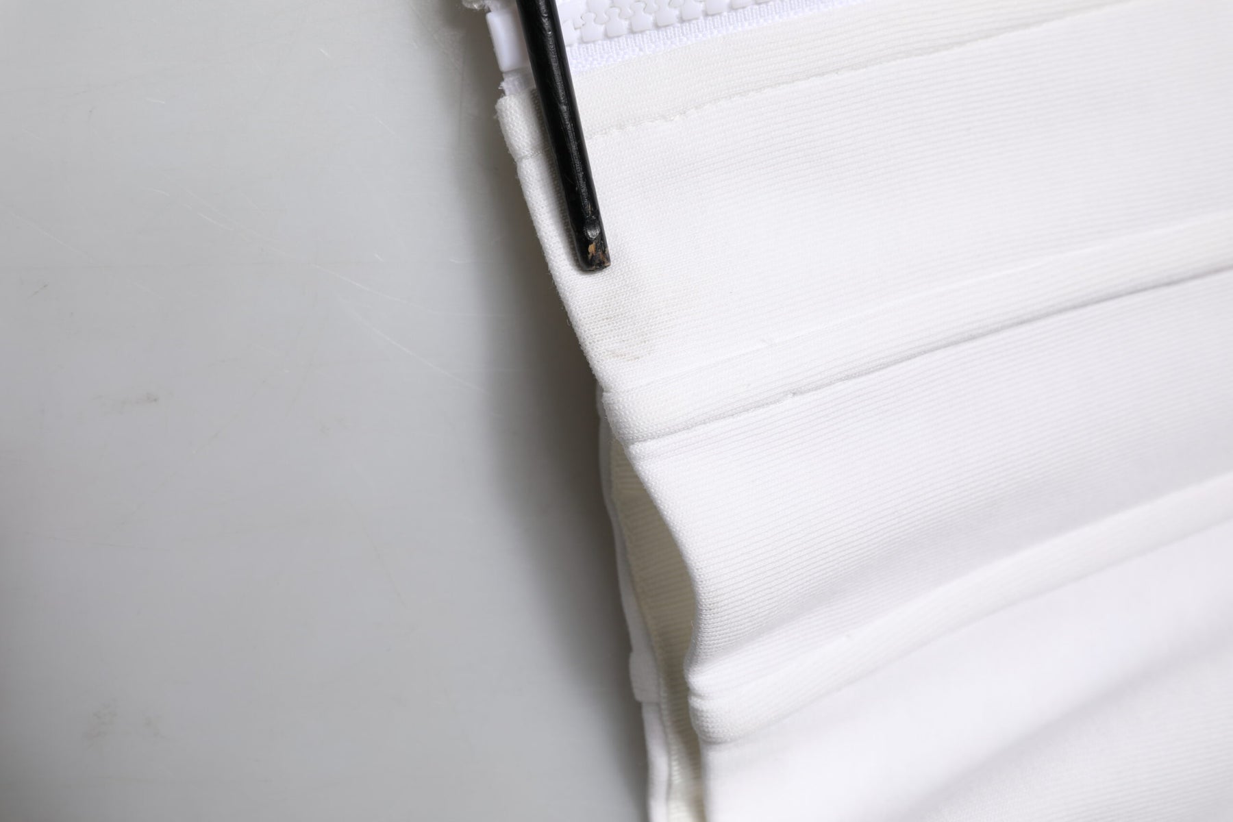 This item has a minor defect, there are stains on the front side and sleeves (see pictures for details).