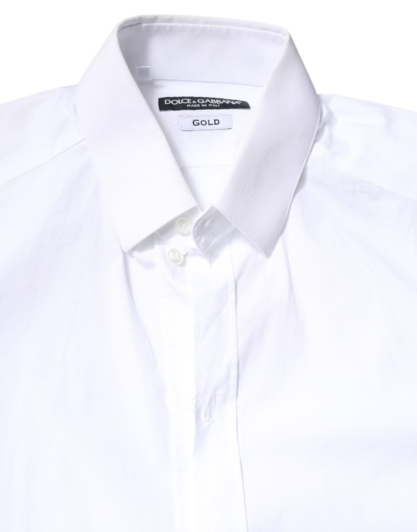 Dolce & Gabbana White Cotton GOLD Dress Formal Collared Shirt